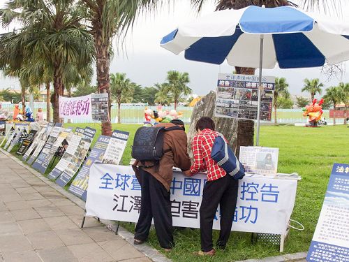 花莲民众了解真相后,纷纷在刑事举报江泽民的联署书上签名。有人对法轮功学员说:“你们要加油!”有人询问:“能为你们做什么?”有的说:“在别的地方已经签过名了,加油!”有人表示看过媒体的报导,知道中共迫害法轮功很多年了,立即签名举报江泽民。