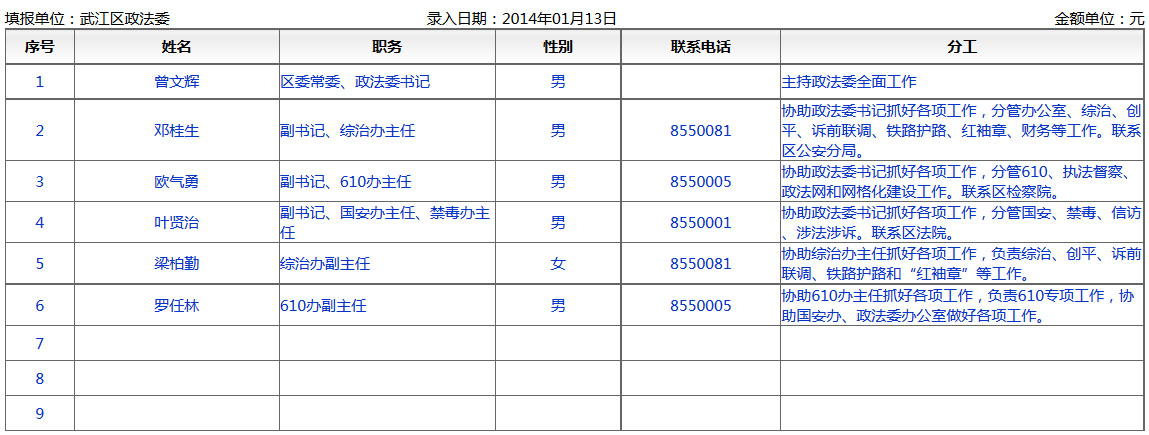 政法委政治部主任(原610人员) 张茹(女) 0392-7233768 15903926000 0392-7222400