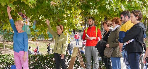 这十多年来,当地的法轮功学员都会来此集体炼功,每次也都会有一些人慕名来学炼功法。特别是在西班牙每年的国家健康博览会后,有时甚至会有几十人在得知法轮功的讯息后来炼功点学炼功法,他们来自不同的年龄段,不同的职业,有时甚至不同的国家。很多人在感受炼功点上的能量及法轮功的美好后,又将法轮功介绍给自己的亲朋好友。