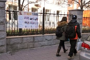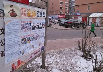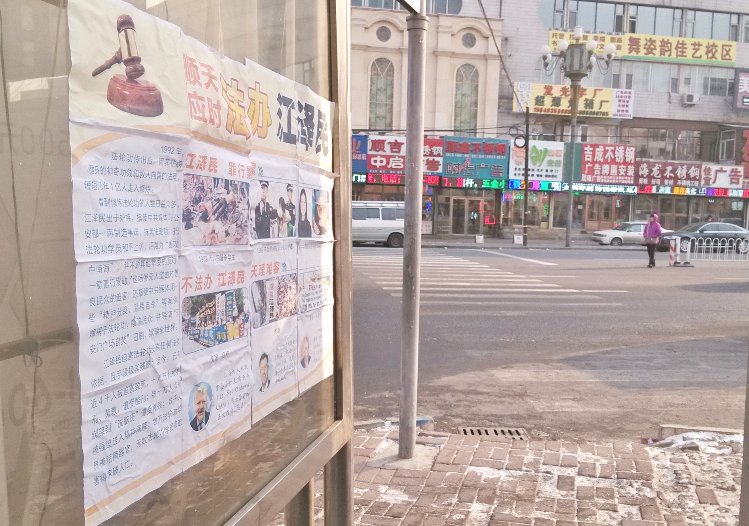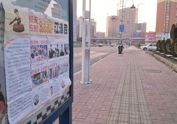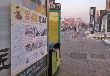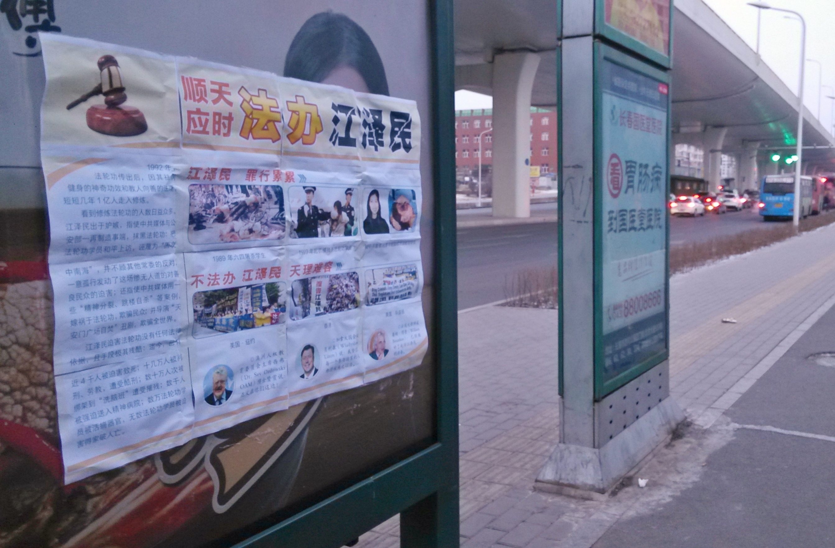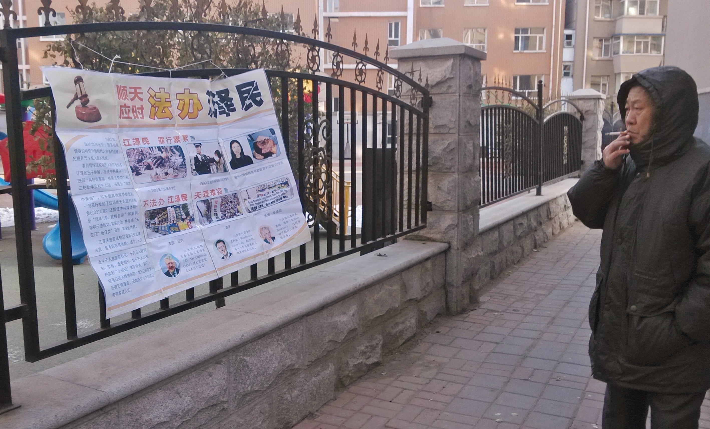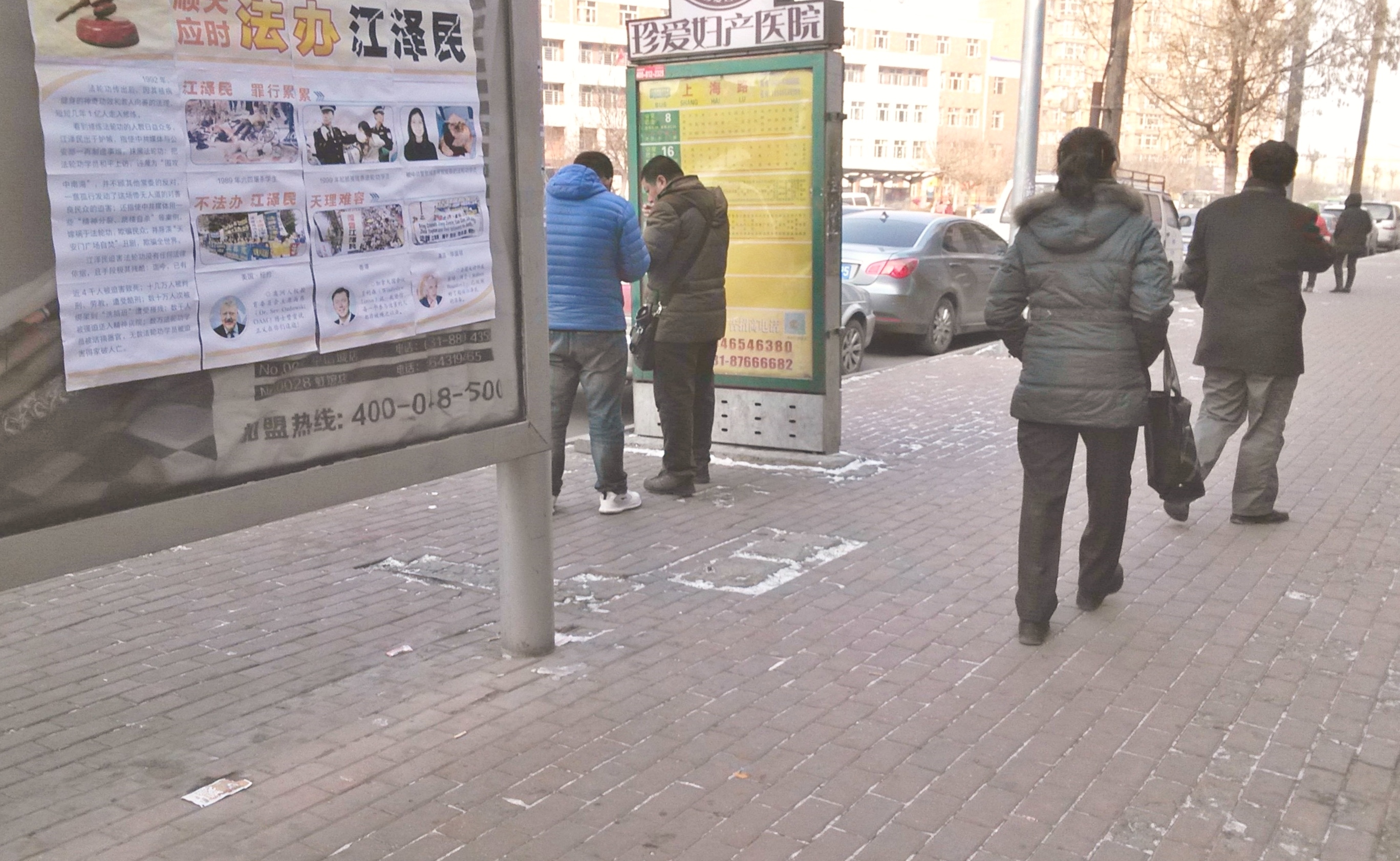 通讯员长春报道)由十六张A4纸组合的诉江展板,出现在长春的各公交站台、伊通河畔、居民小区及林荫小路,展板向长春百姓历数着中共恶首江泽民的罪恶,吸引着过往行人驻足观看,并唤醒着人们的良知。