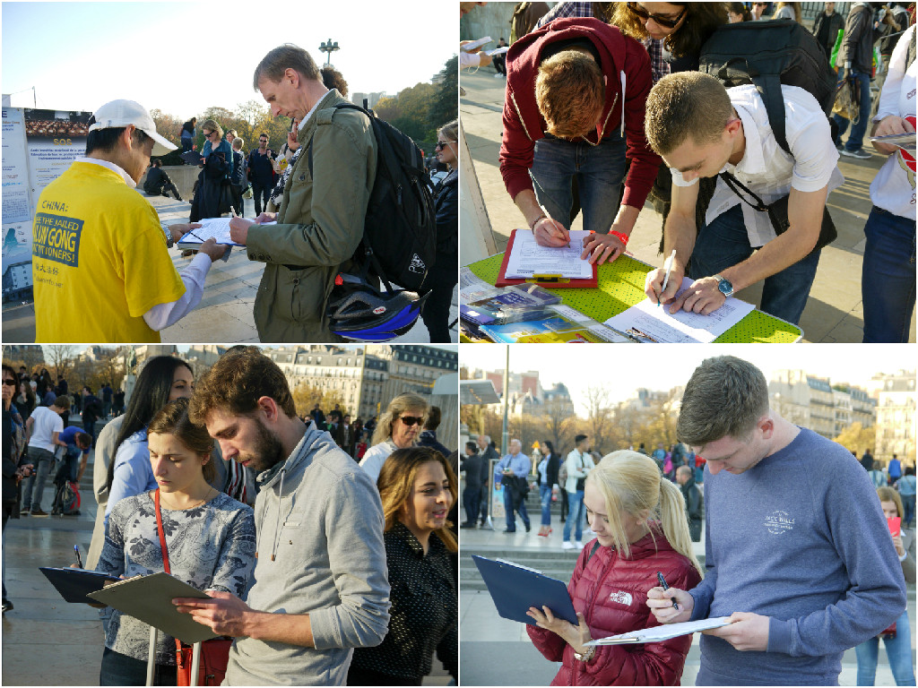 很多游客都是第一次听说法轮功及在中国遭遇的迫害,当他们得知在中国法轮功学员修炼真、善、忍遭到各种迫害、酷刑折磨,甚至被活体摘取器官时,无不震惊,他们都在征签表上签字,支持法轮功学员的行动,并希望早日将江泽民送上法庭审判,让事实真相大白于天下。