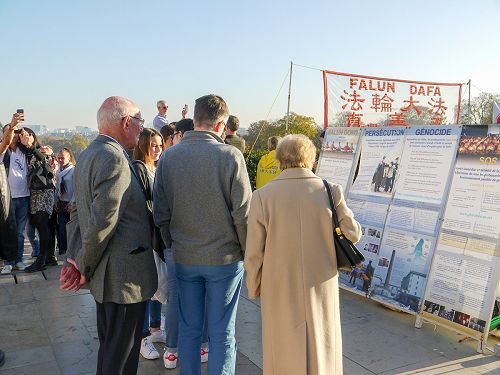 当天,也有一些大陆游客来到人权广场。他们有的观看真相展板、索取真相资料,有的拍摄法轮功炼功场景。在法轮功学员的劝说下,有的大陆游客当场退出中共党、团、队。