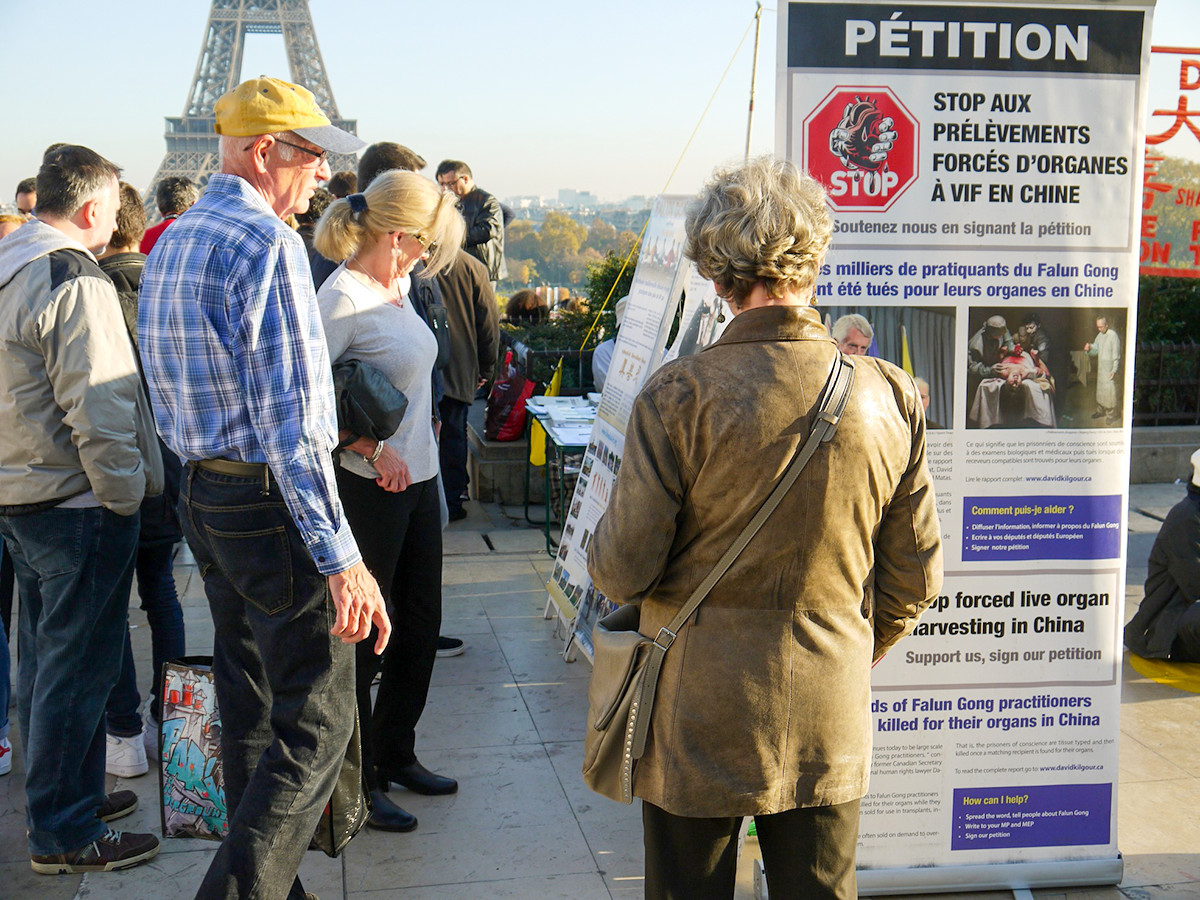 一对退休法国夫妇了解活摘真相后说:“我们完全被震惊了,我们很难想象会发生这样的事情,我们不了解中国。”“二零一五年的今天,发生这样的事情,真的是不可想象的。要让全世界的人都知道这件事。这是反人类罪。”