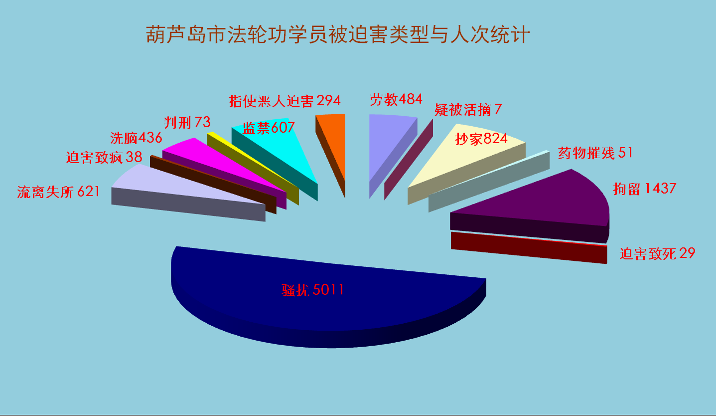 葫芦岛市法轮功学员被迫害类型和人次统计: