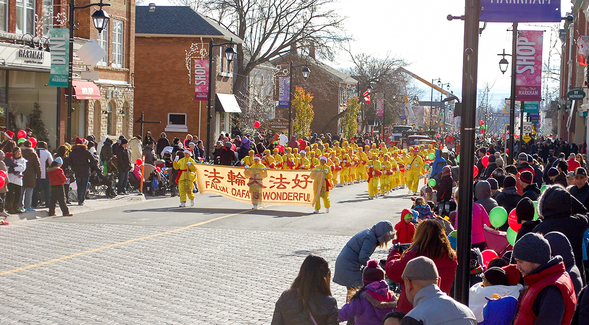 图1:法轮大法代表队多伦多天国乐团在万锦市圣诞节大游行中