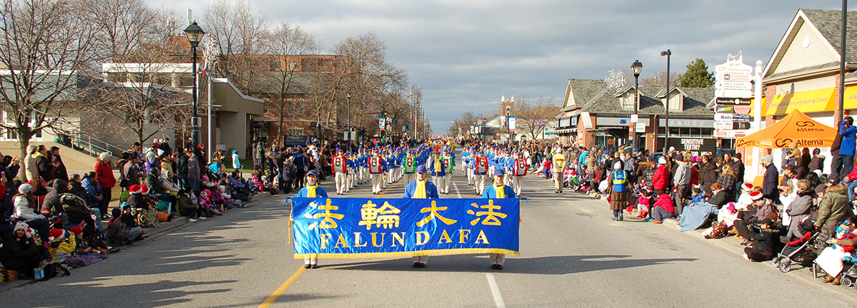 【明慧网二零一五年十二月二日】二零一五年十一月二十八日和二十九日,由法轮功学员组成的加拿大多伦多天国乐团和多伦多腰鼓队应邀参加了两场圣诞节大游行(Santa Claus Parade)。第一场是在大多伦多地区的万锦市,第二场是在大多伦多地区的密西沙加市。万锦市和密西沙加市是大多伦多地区华人聚集工作和居住的其中两个城市。天国乐团和腰鼓队的到来,给这两座城市带来了节日的祝福和亮丽的风景。