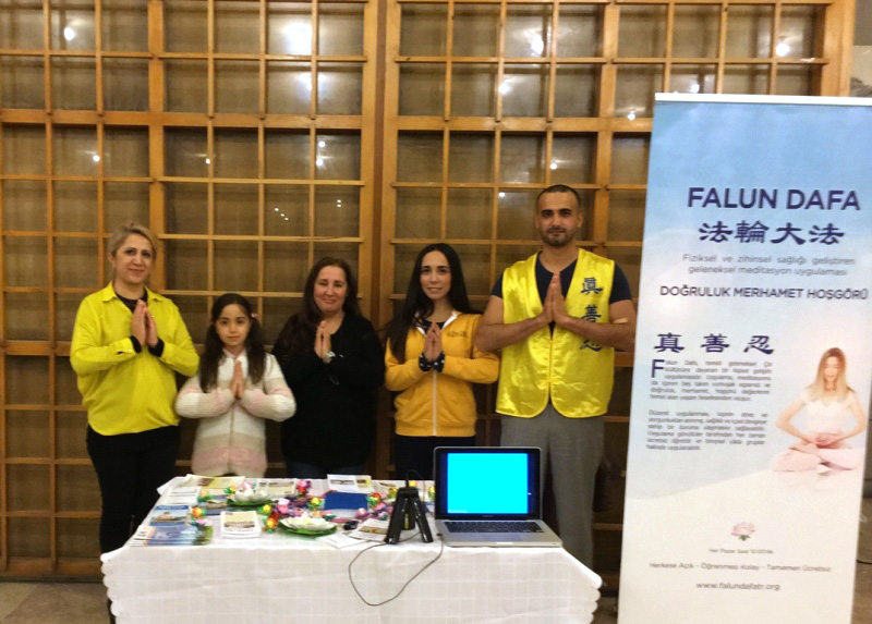 法轮功学员在准备展位时,一些学生已经在那里等待。法轮大法学员向师生们介绍了法轮大法的美好,以及在中国发生的迫害,并派发了真相光盘和小册子。一名学生说,他在德国时就听说过法轮大法。