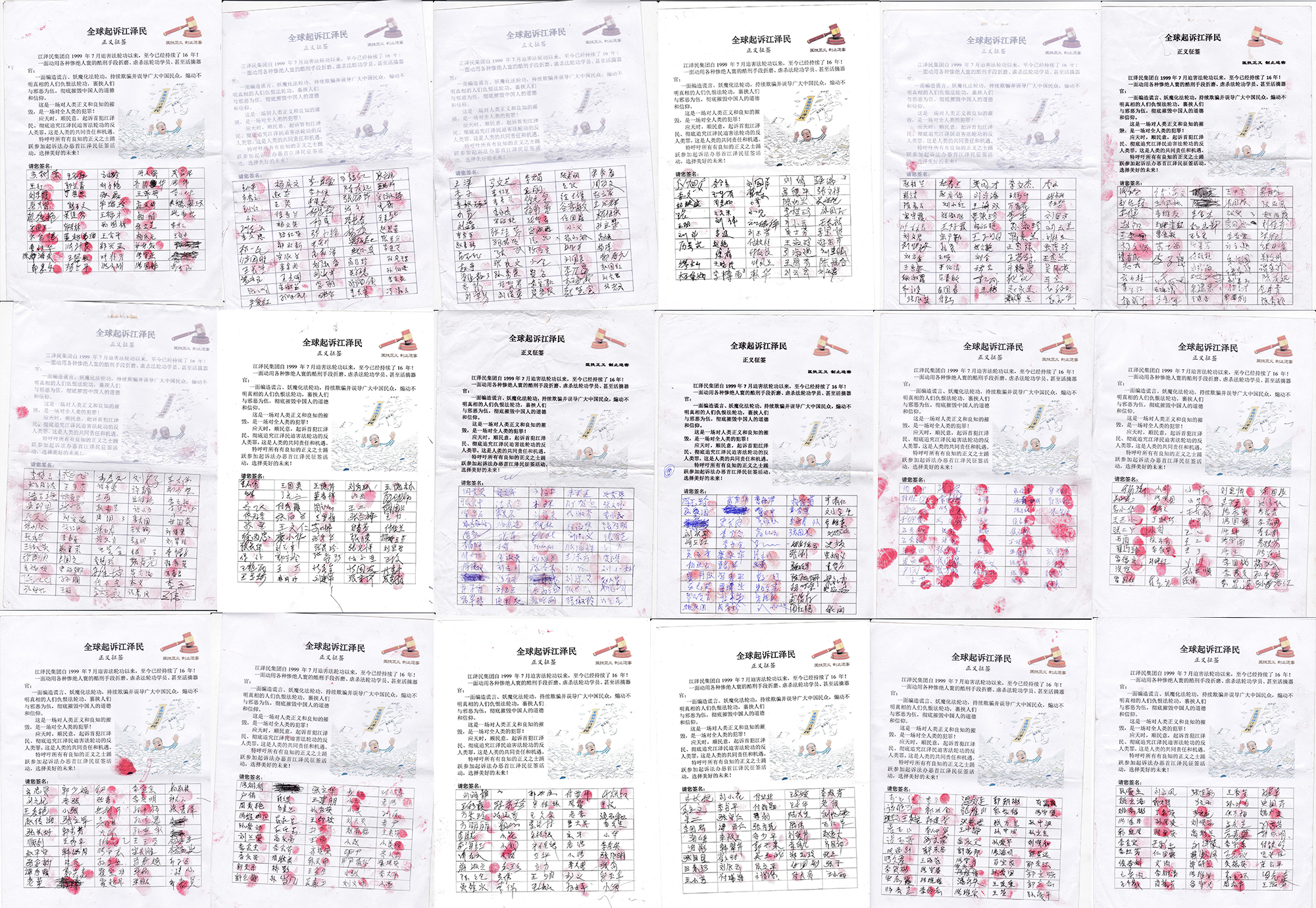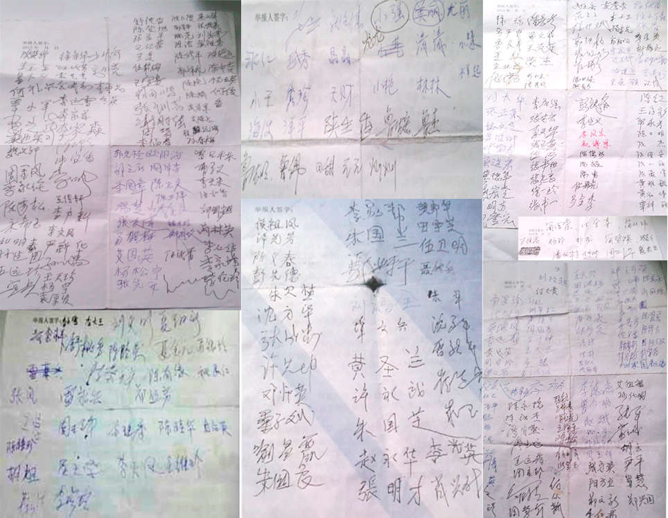 ![]() 湖南长沙善良民众签名举报江泽民的部分图例 |