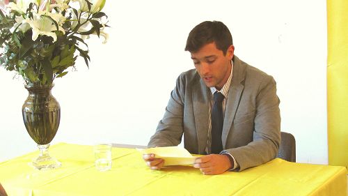George Tzokas交流了他去塞尔维亚十六国峰会参加抗议中共迫害法轮功的过程中,当他得知同修被无端抓進贝尔格莱德的监狱后,怎样修去怕心。到达贝尔格莱德后,去希腊大使馆讲述法轮功被迫害真相,大使热情地接待了他们,了解了真相,甚至对学习法轮功产生了兴趣。他们还去其它场所讲述法轮功被迫害真相。在贝尔格莱德他感受到了共产邪灵的压力,使他对在大陆的同修顶着被中共迫害的压力,还在讲真相救众生的精神产生了深深地敬佩,也悟到海外同修讲真相救众生的责任和重要性。