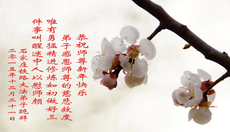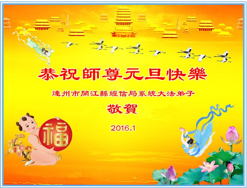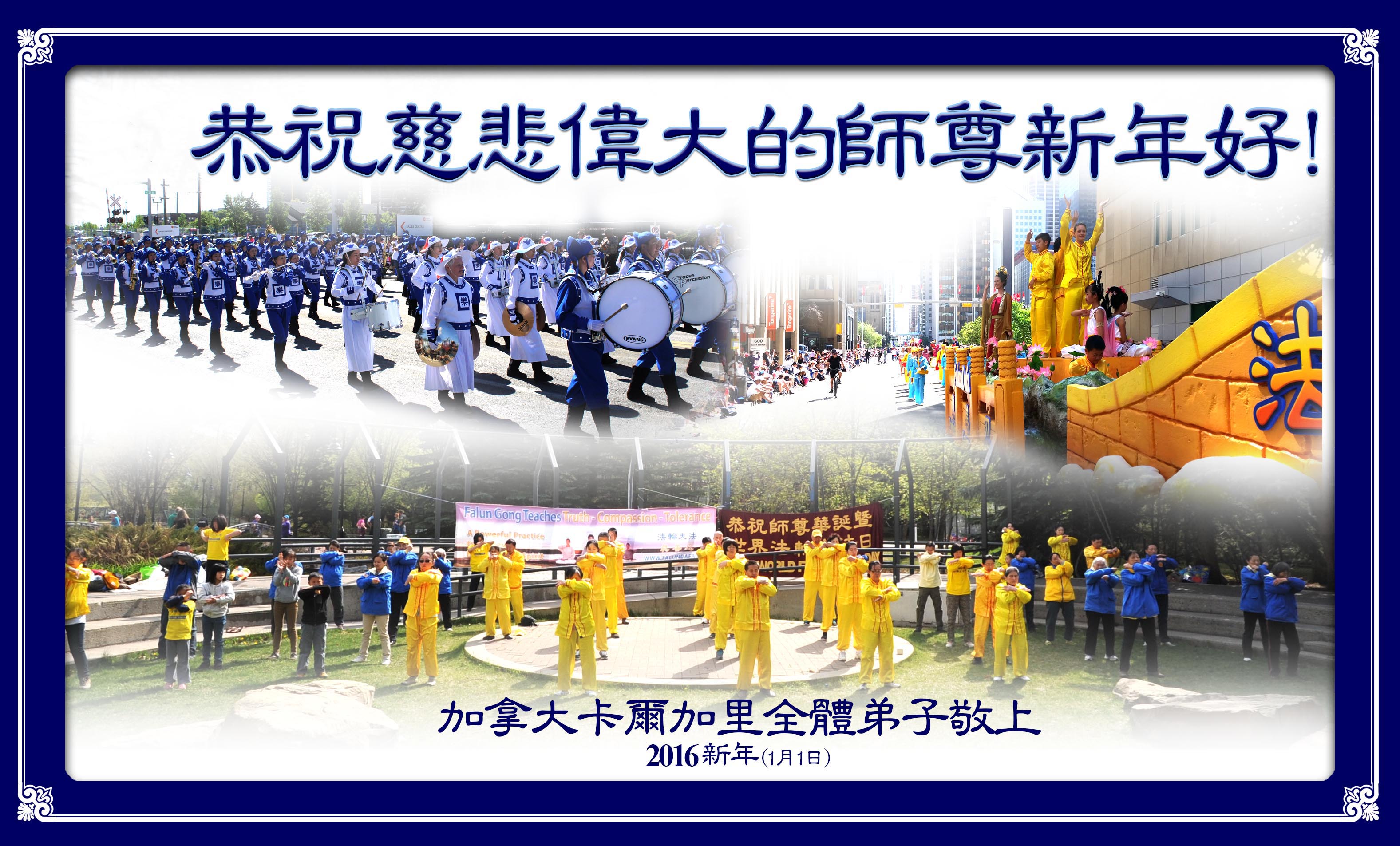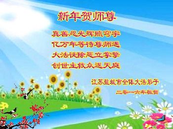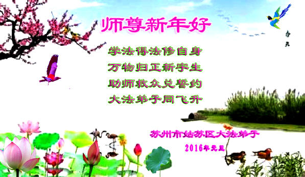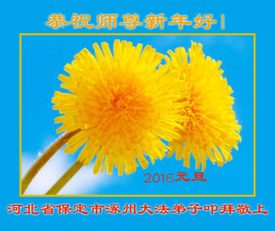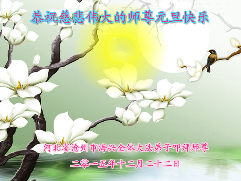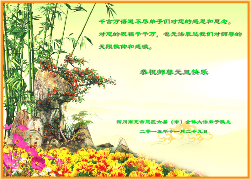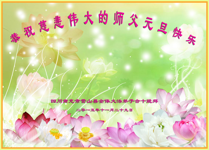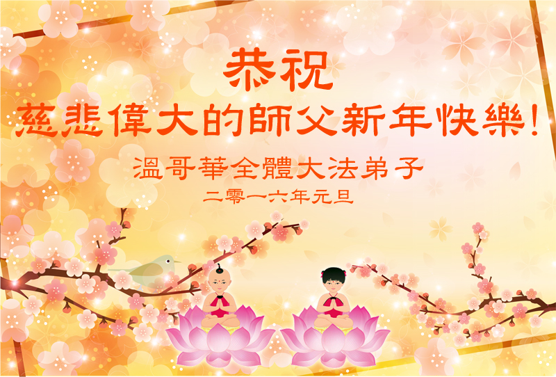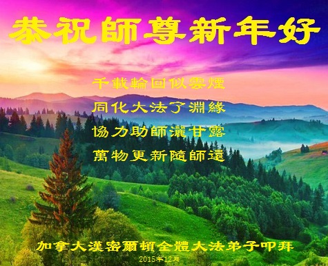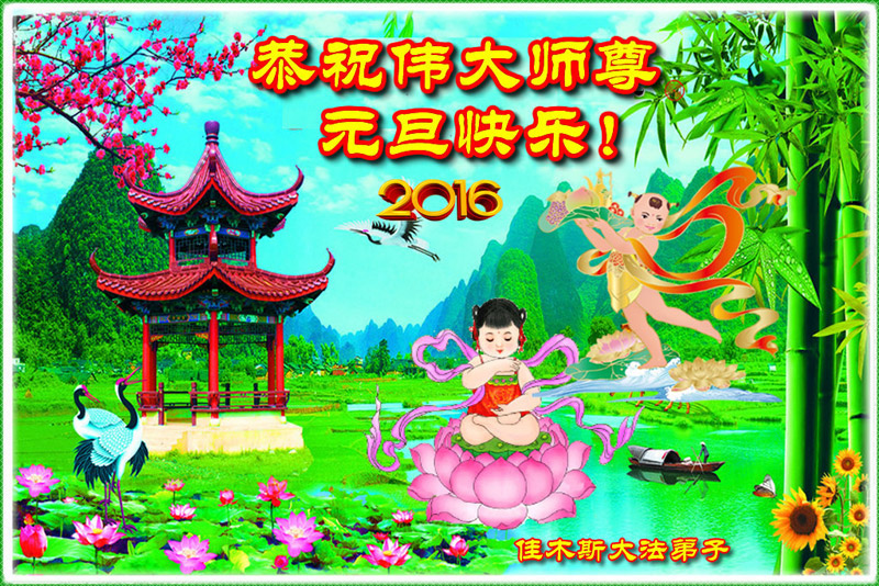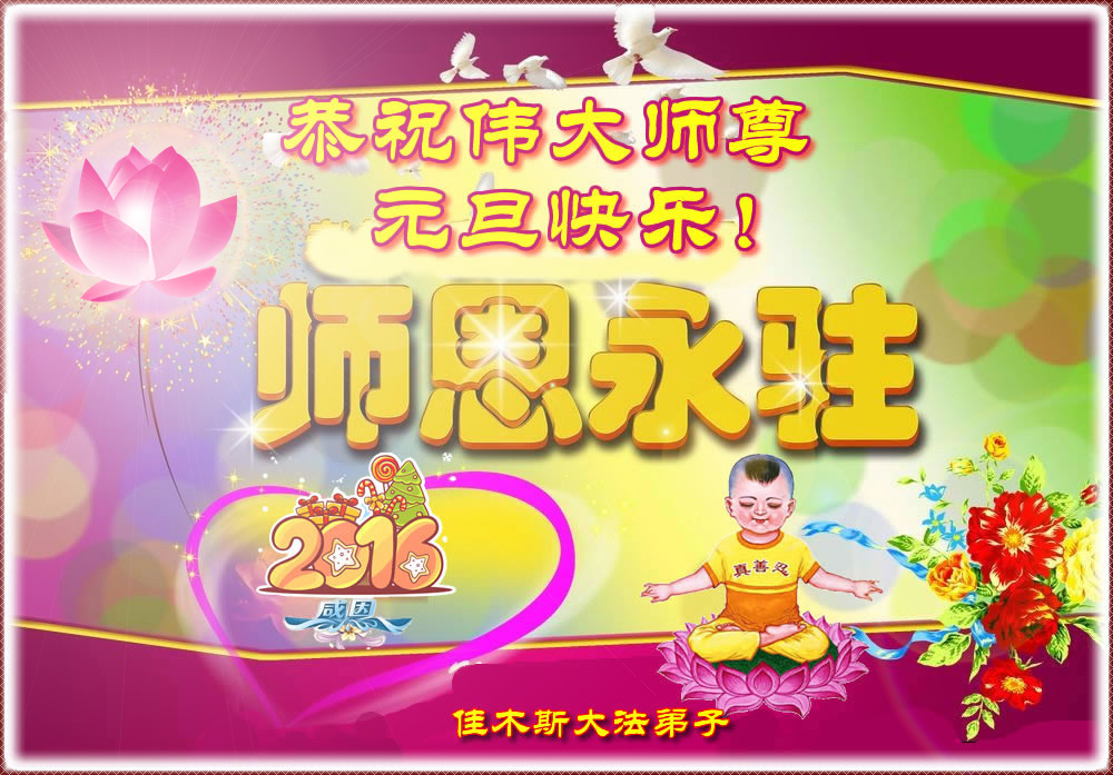 <英文版: http://en.minghui.org/html/articles/2015/12/31/154386.html>美国加州、纽约、德州等地大法弟子恭祝师尊新年好