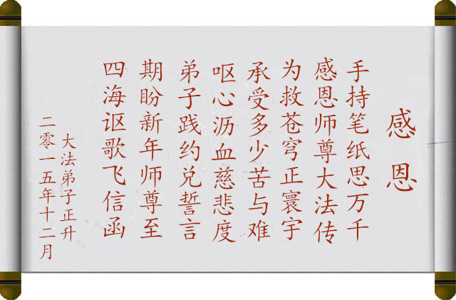 弟子们的神圣誓约依旧在心间,不忘助师正法,证实大法和救度众生的誓约,在新的一年里,一定更加做好三件事,多救人。
