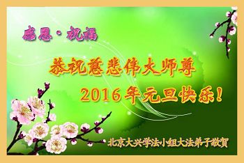 北京大兴学法小组大法弟子恭祝慈悲伟大的师尊2016年元旦快乐!北京市紫竹院两个学法小组大法弟子祝慈悲伟大的师尊新年好!