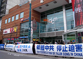 十二月二十八日,加拿大多伦多法轮功学员在市中心的中区唐人街举办了“真相长城”活动。活动的主题是“祝大陆同胞新年快乐”、“声援二十万诉江大潮”。