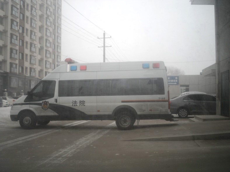 图五:(右侧) 两位大法弟子出法院、上警车