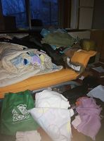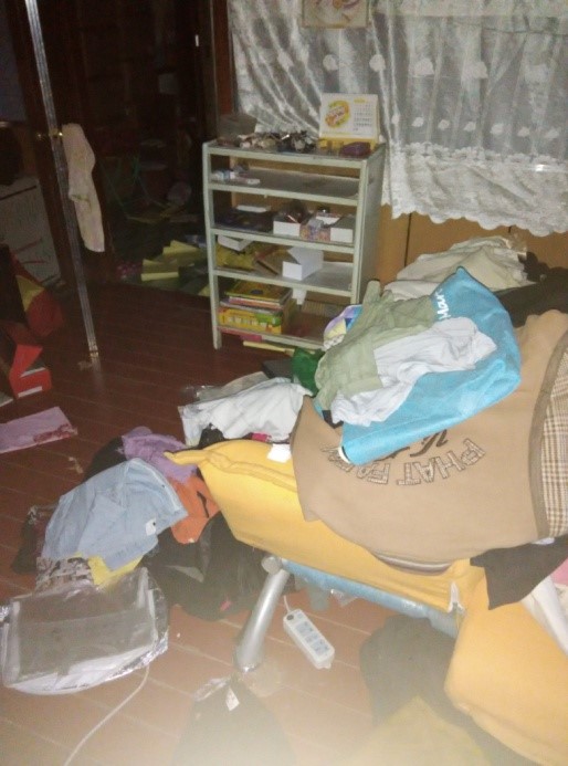 在抢劫刘素芝家的时间段二零一五年十一月十三日下午四点多钟,有目击证人(刘素芝的一个朋友要到家中找她)看见在刘素芝家的楼前停有一辆面包车,下来五、六个警察。以下是刘素芝家中遭警察抢劫后的现场照片。