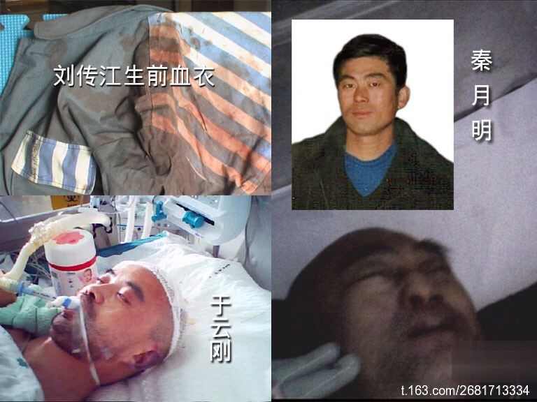 二零一一年二月,黑龙江省佳木斯监狱为完成对法轮功学员的所谓“转化率”, 短短十五天的时间,秦月明、于云刚、刘传江三位正值壮年的法轮功学员被迫害离世。家属赶到佳木斯监狱看到已经放到冰柜里的秦月明满身是伤、嘴唇青紫、口鼻流血,面目表情痛苦异常,他的右侧脖子后侧呈大片红肿,身体被触摸到的部位仍然是正常人的体温。然而,佳木斯监狱不给家属看监控录像,只蛮横告知“正常死亡”。