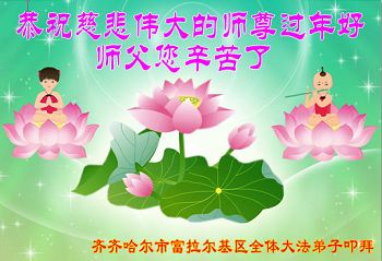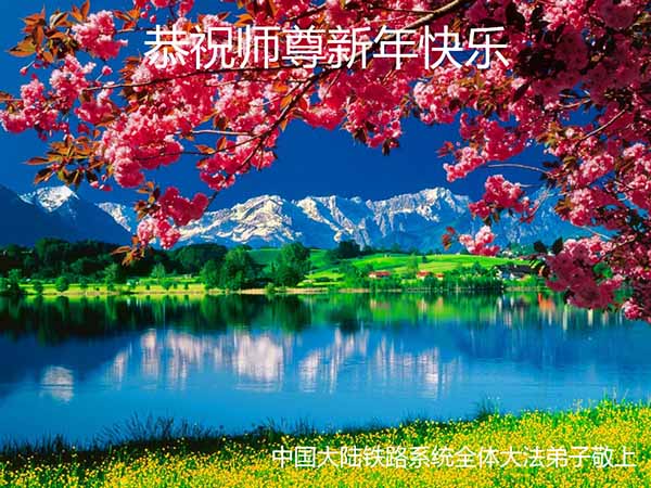值此二零一五年中国新年即将来临之际,中国大陆铁路系统全体大法弟子恭祝至尊至上慈悲伟大的师尊新年快乐!感谢师尊对我们的慈悲苦度!在师尊的慈悲呵护与加持下我们逐渐走向成熟,弟子们所拥有的一切都溶汇着师尊巨大的付出与承受,对师尊的感恩无以言表。我们只有珍惜这万古机缘,珍惜这所剩不多的助师正法时间,增强凝聚力,整体圆容配合,做好三件事,救度更多的世人,满载众生随师还。