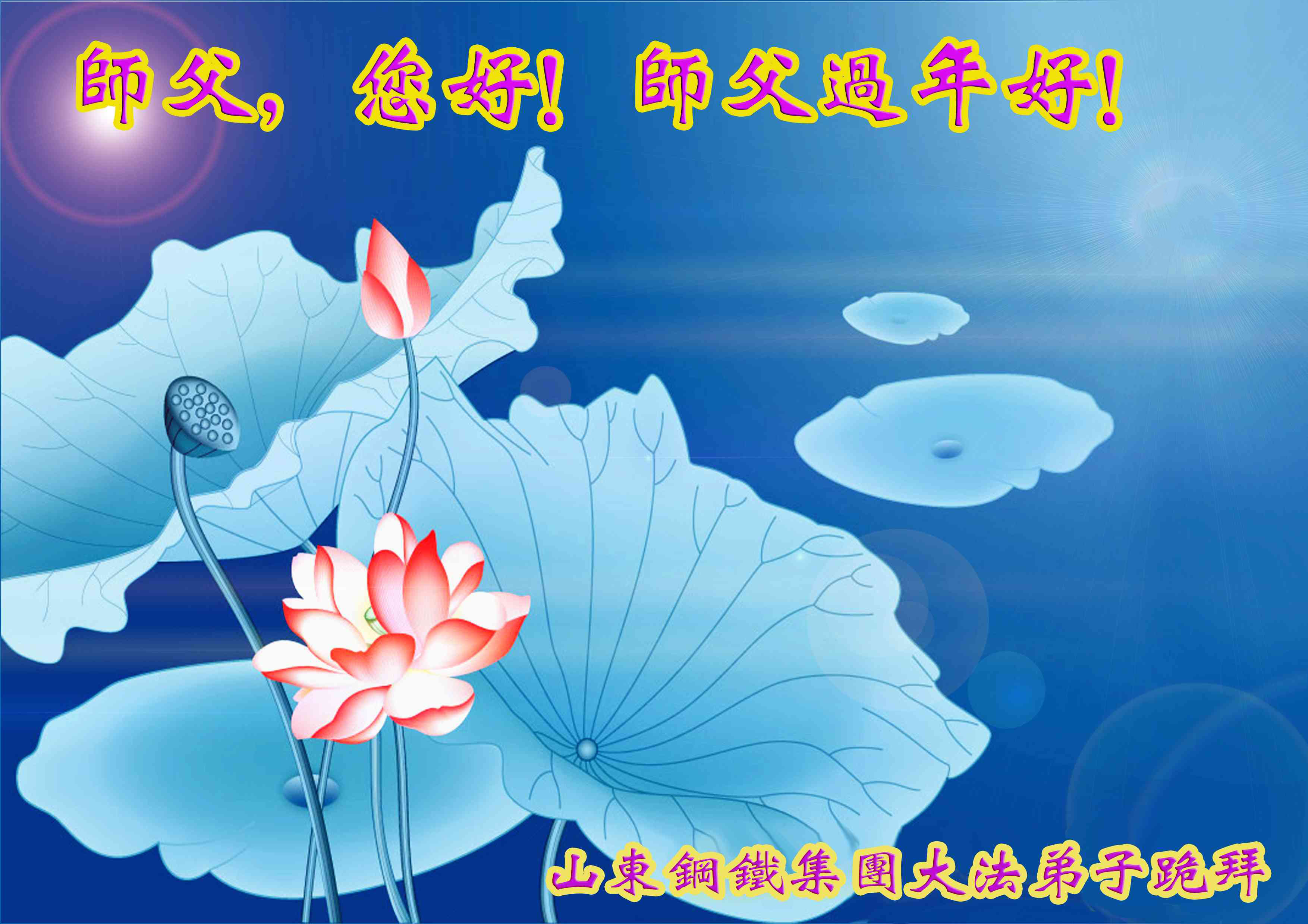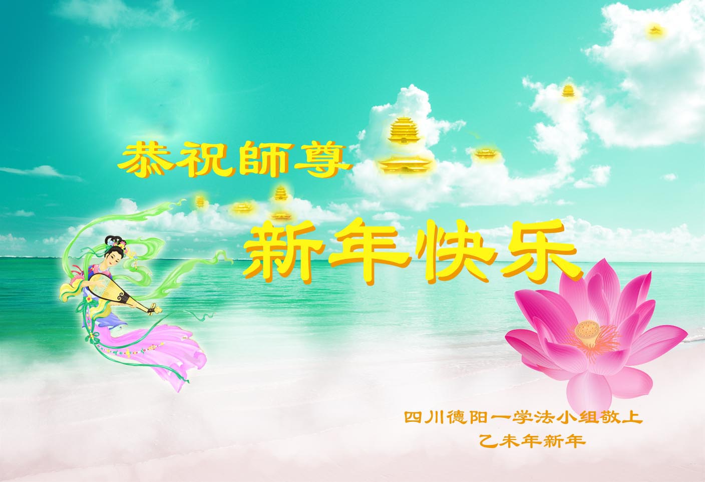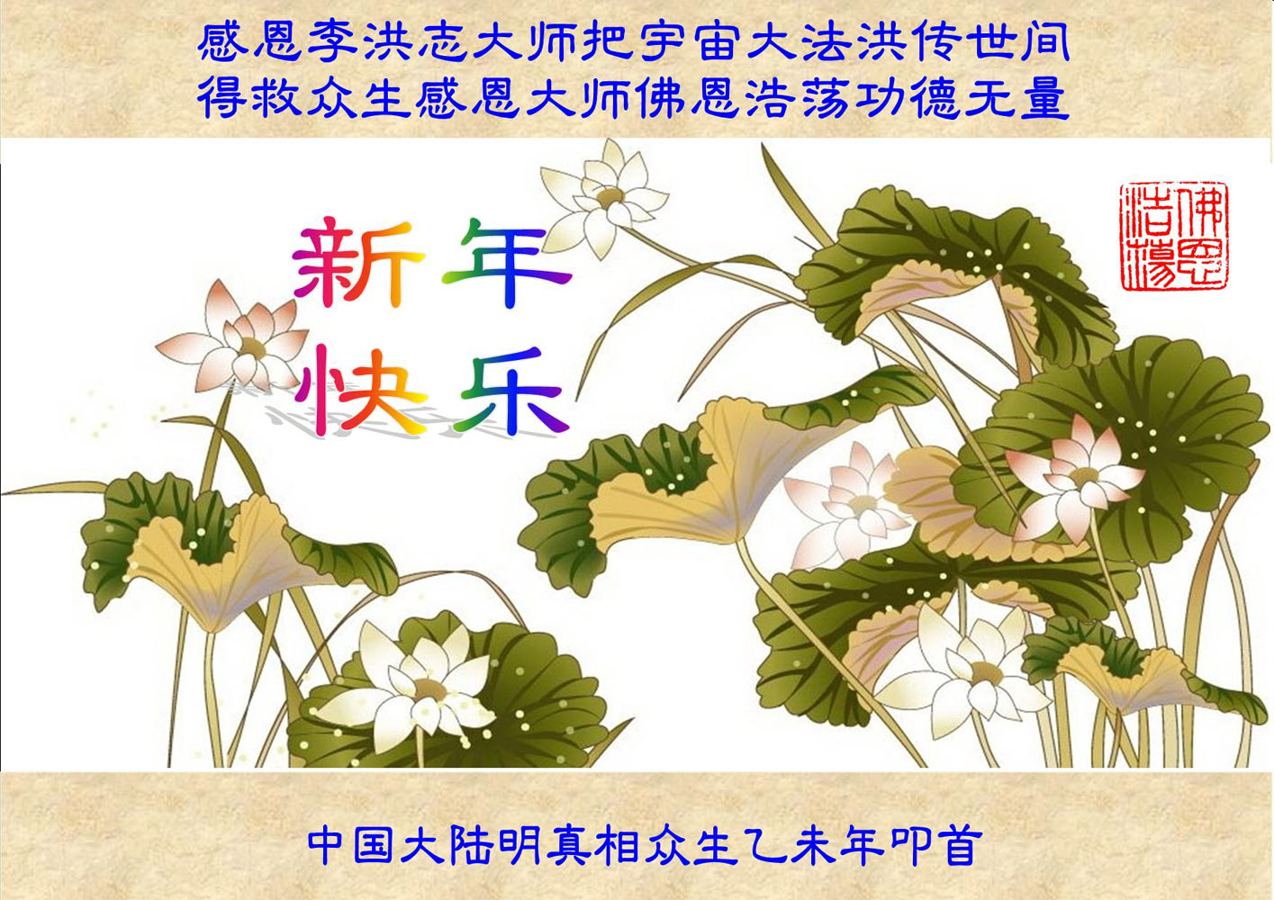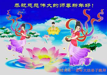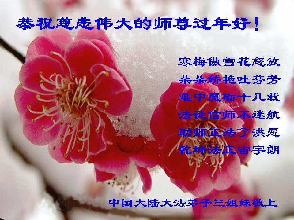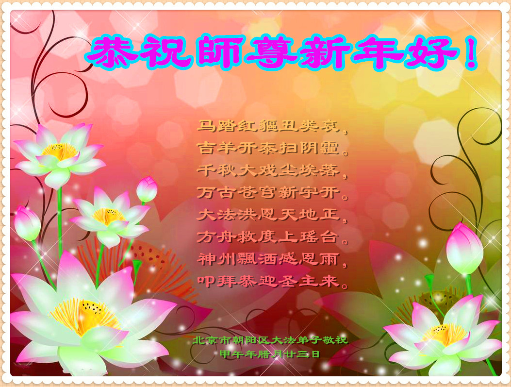 一元复始,万象更新。在新的一年里,弟子们一定谨记师尊教诲,向内找、向内修,决不辜负师尊的慈悲救度。努力做好三件事,跟上正法進程,多救人,回报师恩。盼与师尊早日团聚。给师尊拜年!