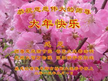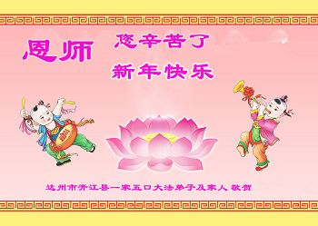 我们全家人修炼近二十年了,在七千多个日日夜夜里,慈悲的师尊时时刻刻在我们身边,看护着我们。在这辞旧迎新的过年前夕,全家人发自内心的向慈悲的师尊说一声:师父,您辛苦了!我们一定遵照您的教导做好三件事,紧跟师尊,坚修到底!