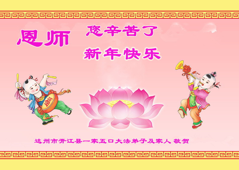 四川德阳一家三代大法弟子及明真相的世人恭祝师尊新年快乐!