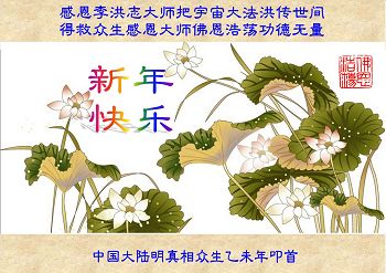 “法轮大法好!”“真善忍好!”我要做个“法正人间时的大法弟子”。恭祝李大师新年快乐!
