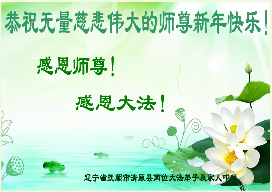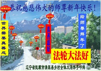 我是辽宁清原人,有个三辈十多口的大家庭。妈妈的辈份最大,并学炼法轮功,今年七十六岁了。以前她的脑血栓等多种疾病不但没了,而且精神状态特别好,炼法轮功后,十多年来,没打一针,没吃一片药,从妈妈身上我们见证了法轮大法的神奇与超常。我们都愿意听妈妈的话,妈妈给我们的真相,《九评》书、神韵光盘,我们都看了,除了我三个月的女儿外,全家人都声明退出了党团队邪恶组织。妈妈的事,我们全家都大力支持与协助。也时常帮传一些真相资料。“法轮大法好!真善忍好!”时刻铭记心间。这几年来,生意兴隆,好事连连,一顺百顺。一、2012年,大哥开车从黑龙江回辽宁,车里坐着四个人,行驶途中,突然迎面冲出一辆摩托车,上面骑着两个人,就在那相撞的刹那间,哥哥的车突然急转弯冲出道下,缓缓下滑,落到仅有的一个土坡上停住了,六个人两台车都平安无事,我们全家都明白,是李大师的护佑。二、哥、姐的三个孩子学习成绩并不十分好,却很顺利的都考上了大学,两个已毕业,没花一分钱,却都找到了理想的工作。三、我结婚已十六年了,一直没有孩子,曾到处求医问药无效,今年马年我媳妇惊喜怀孕并生下一个可爱的女儿,给我们原本和睦的家庭又带来了欢乐!在此新年之际,我们全家人向李大师叩首,并恭祝李大师过年好!新年快乐!
