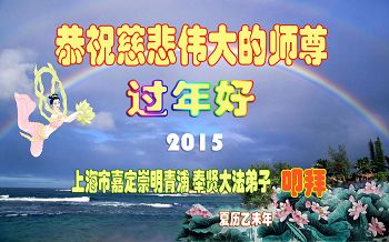上海市大法弟子恭祝师尊新年快乐!上海市松江区大法弟子恭祝慈悲伟大的师父新年快乐!师父好师父好 师父好得救世人拜年了诚念法轮大法好健康平安得福报严寒已逝春来到佛光普照正人道师父好 师父好宇宙众生跪拜了为救苍生受煎熬无量巨难谁知晓跨入新宇无穷妙佛恩浩荡洪微照师父好 师父好大法弟子叩首了亿劫等待为今朝助师正法共提高一心做好三件事精進救人愿师笑上海市金山区大法弟子恭祝慈悲伟大的师父新年快乐!唱主角层层天宇法轮旋万物更新又一年大法弟子唱主角压轴大戏在上演正念正行人世间慈悲坦荡清谎言落幕之前抢时间全力以赴救回天亿万弟子心相连整体提高惜圣缘浩荡师恩无以报叩拜师尊在新年上海浦东一家大法弟子恭祝师尊新年快乐!上海南汇区大法弟子恭祝师尊新年快乐!上海市控江、吴淞两个街道大法弟子祝师尊乙未年新年快乐!上海市控江街道两位大法弟子祝师尊乙未年新年快乐!在新的一年中,我们将再接再厉,做好“三件事”多多救人,不辜负师尊对我们的救度之恩!上海市控江街道两位大法弟子叩拜!上海市吴淞街道两位大法弟子祝师尊乙未年新年快乐!在新的一年中,我们将再接再厉,做好“三件事”多多救人,不辜负师尊对我们的救度之恩!上海市吴淞街道两位大法弟子叩拜上海虹口区大法弟子恭祝师尊新年快乐!上海大法弟子恭祝师尊新年快乐!上海松江大法弟子恭祝师尊新年快乐!上海市浦东新区一学法学组大法弟子恭祝师尊新年快乐!上海浦东南汇全体大法弟子恭祝慈悲伟大的师尊新年快乐!上海嘉定大法弟子恭祝师尊新年快乐!师尊,祝您新年快乐!我知道您一直在我身边,我一直感受到您的保护,您的点化,您的慈悲,可是我人心太多,总是拖泥带水的不去执着,不能好好炼功。