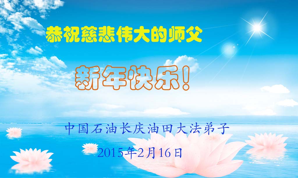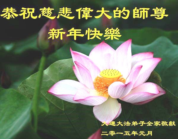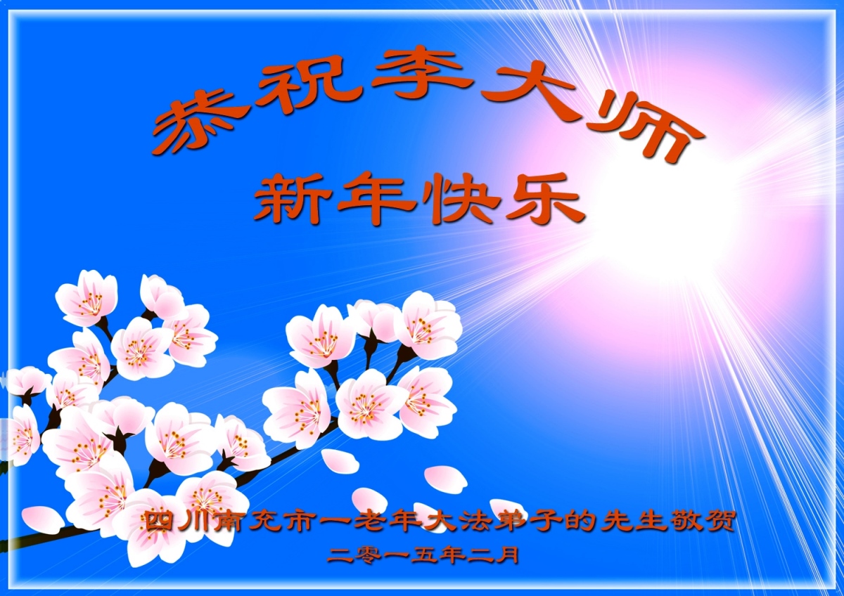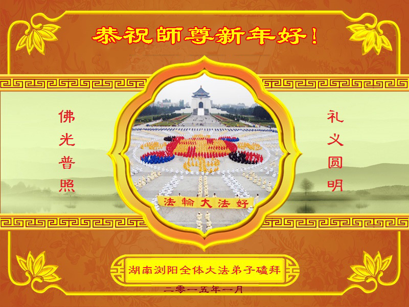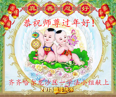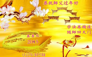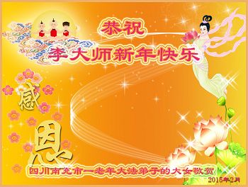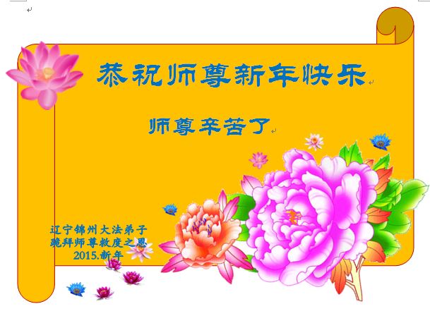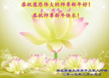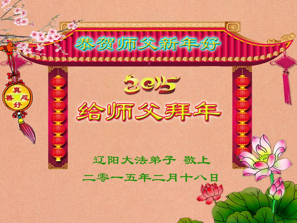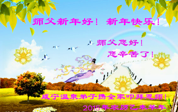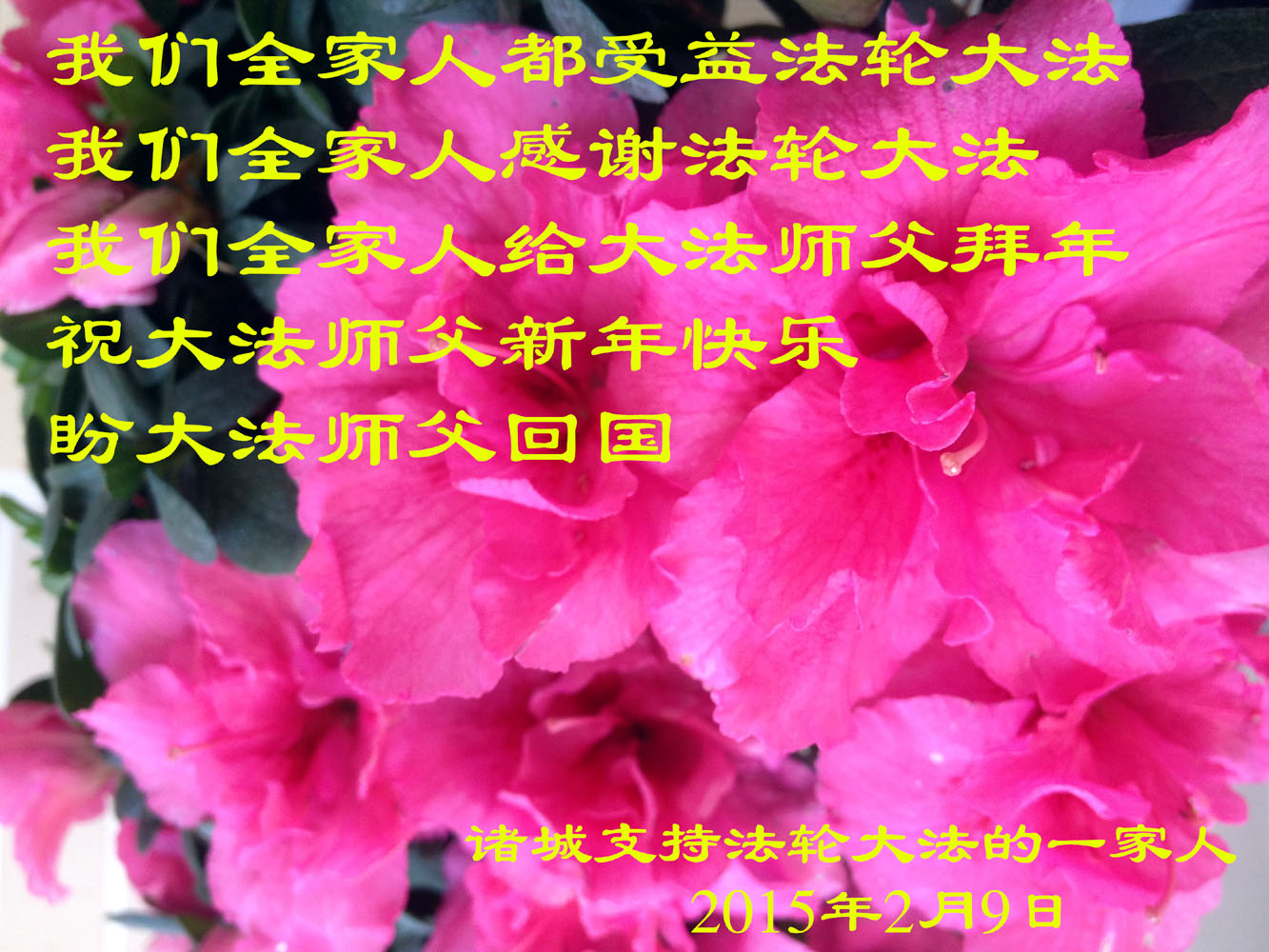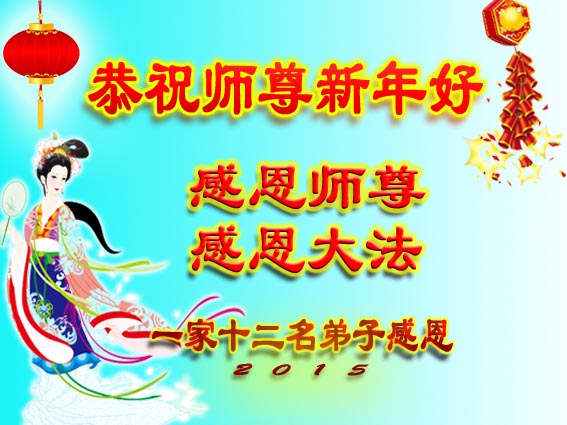 在2015年新年之际,我代表全家向尊敬的李老师拜年,祝李老师新年快乐!愿法轮大法洪扬宇宙,早日法正人间。