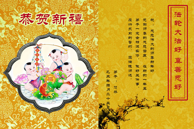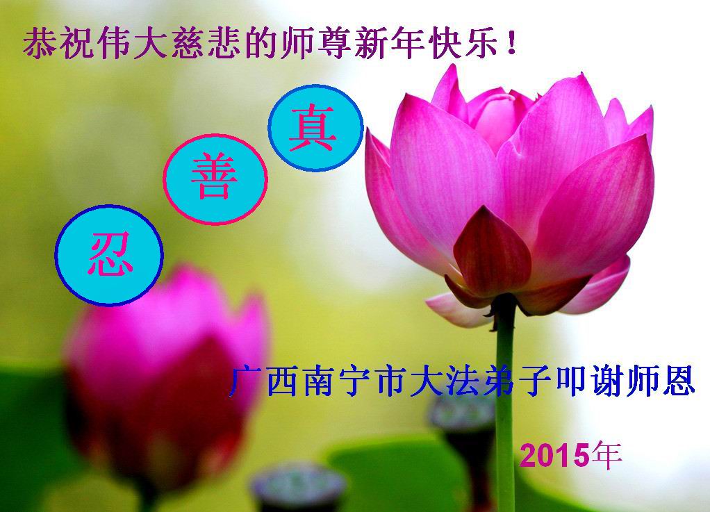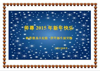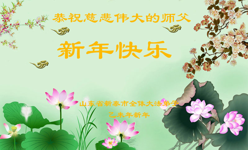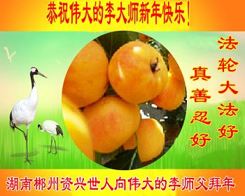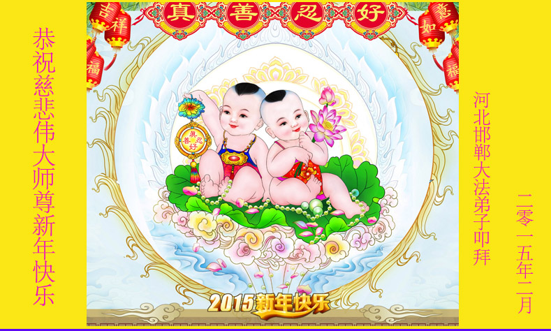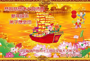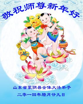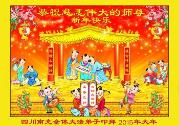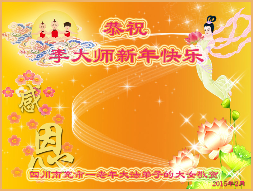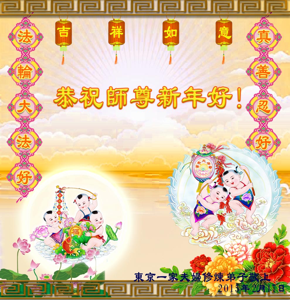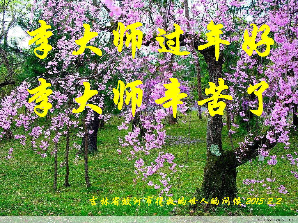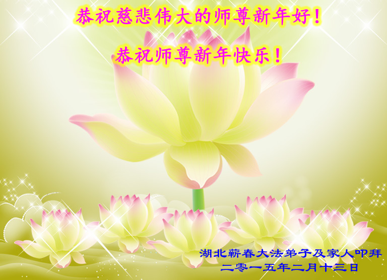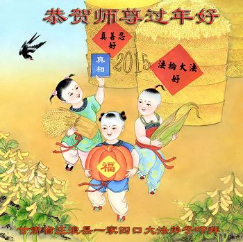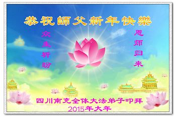 在2015年新年之际,我代表全家向尊敬的李老师拜年,祝李老师新年快乐!愿法轮大法洪扬宇宙,早日法正人间。
