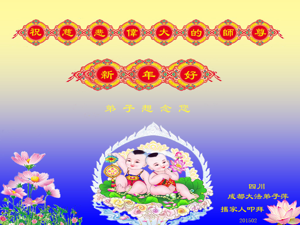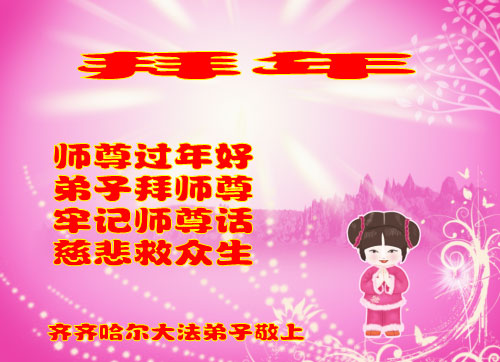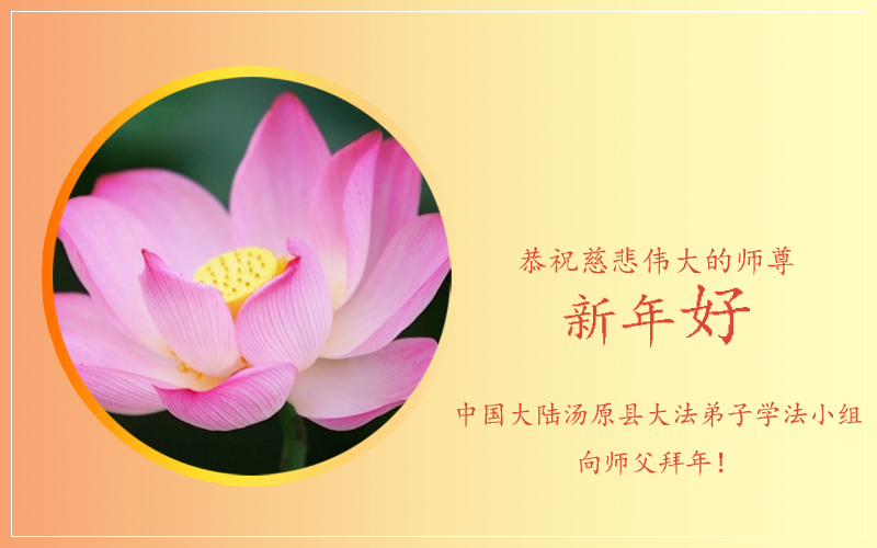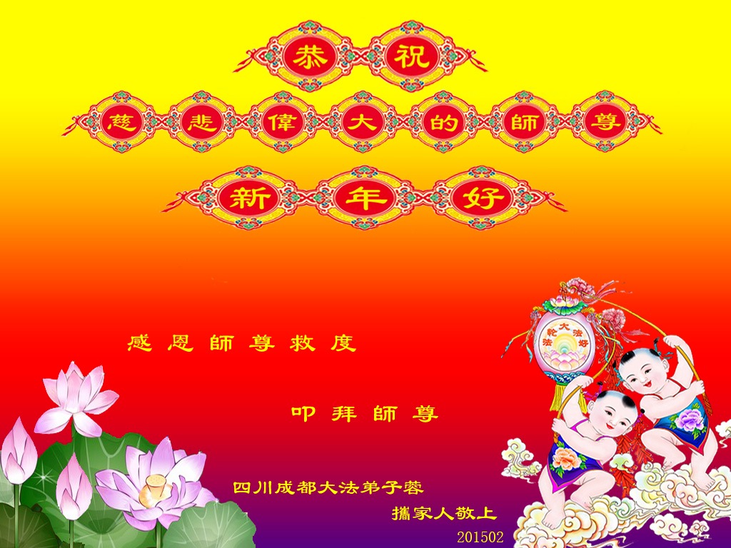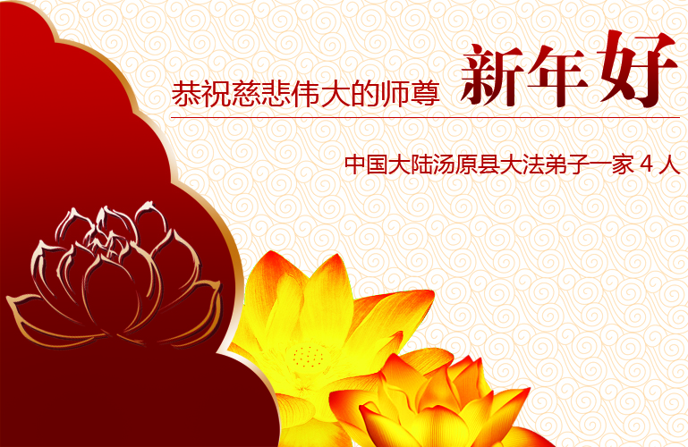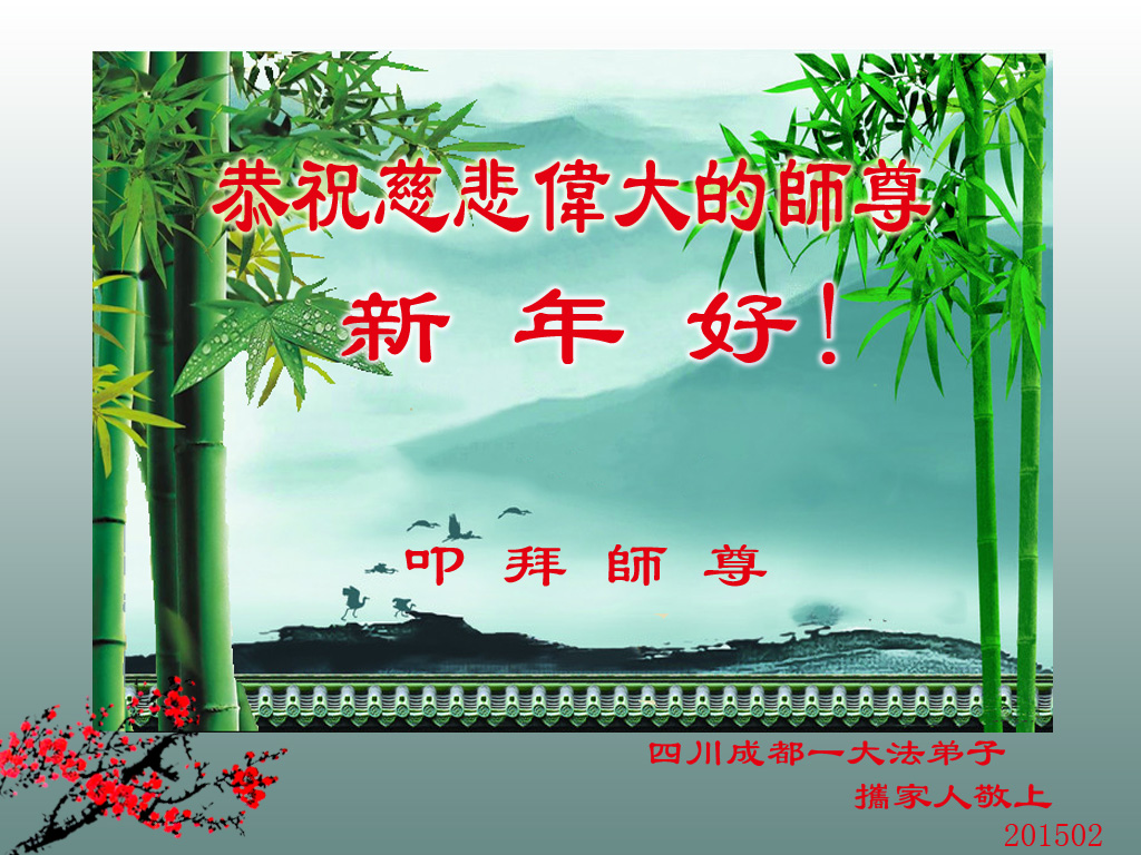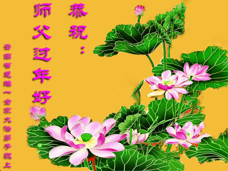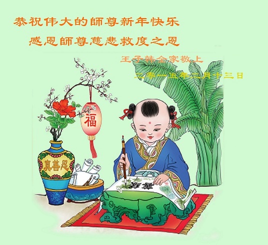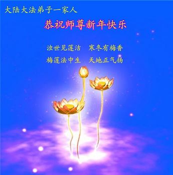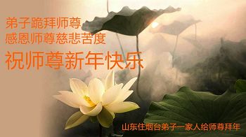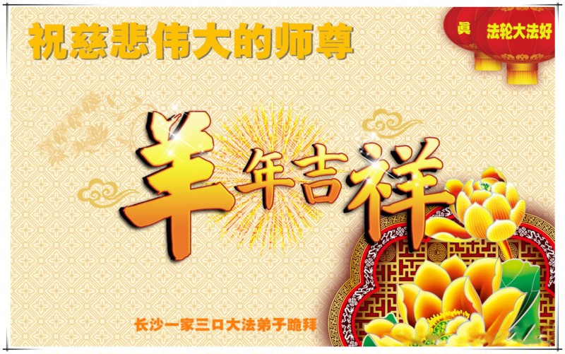 作为大法弟子的家属,在新年到来之际,向伟大的李老师拜年!感谢李老师对弟子及其家属的慈悲呵护!祝李老师新年快乐!