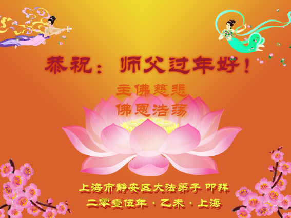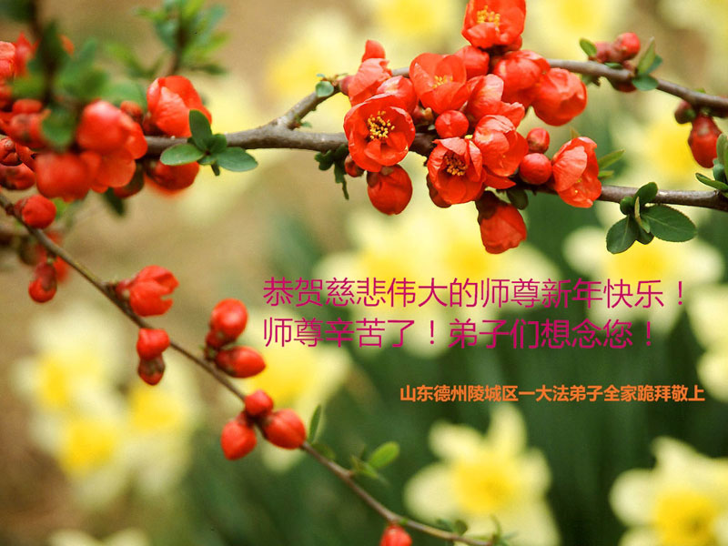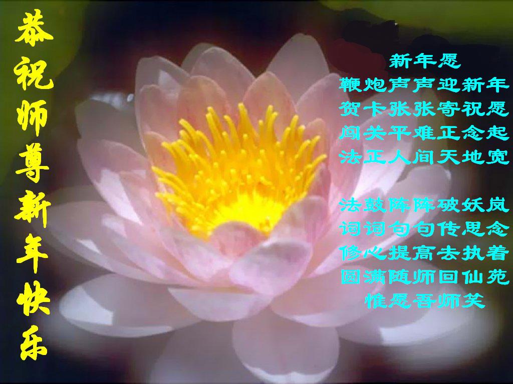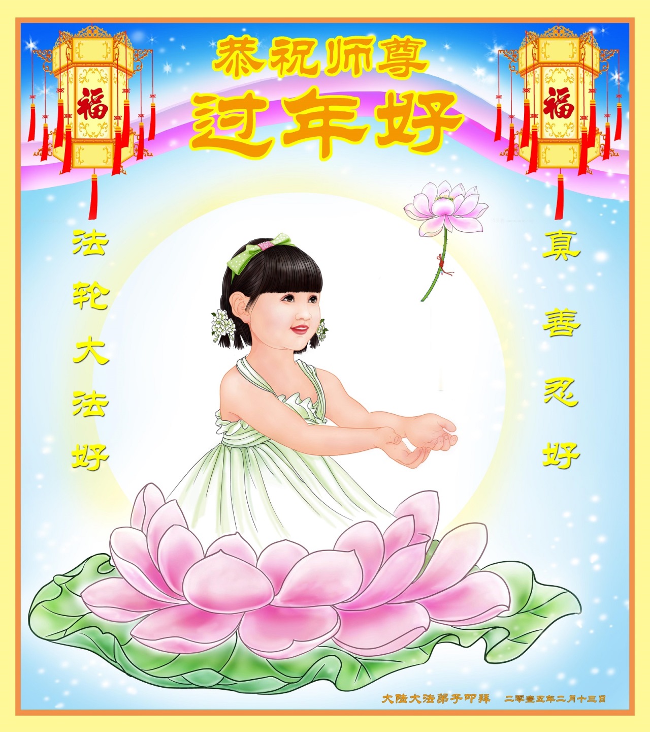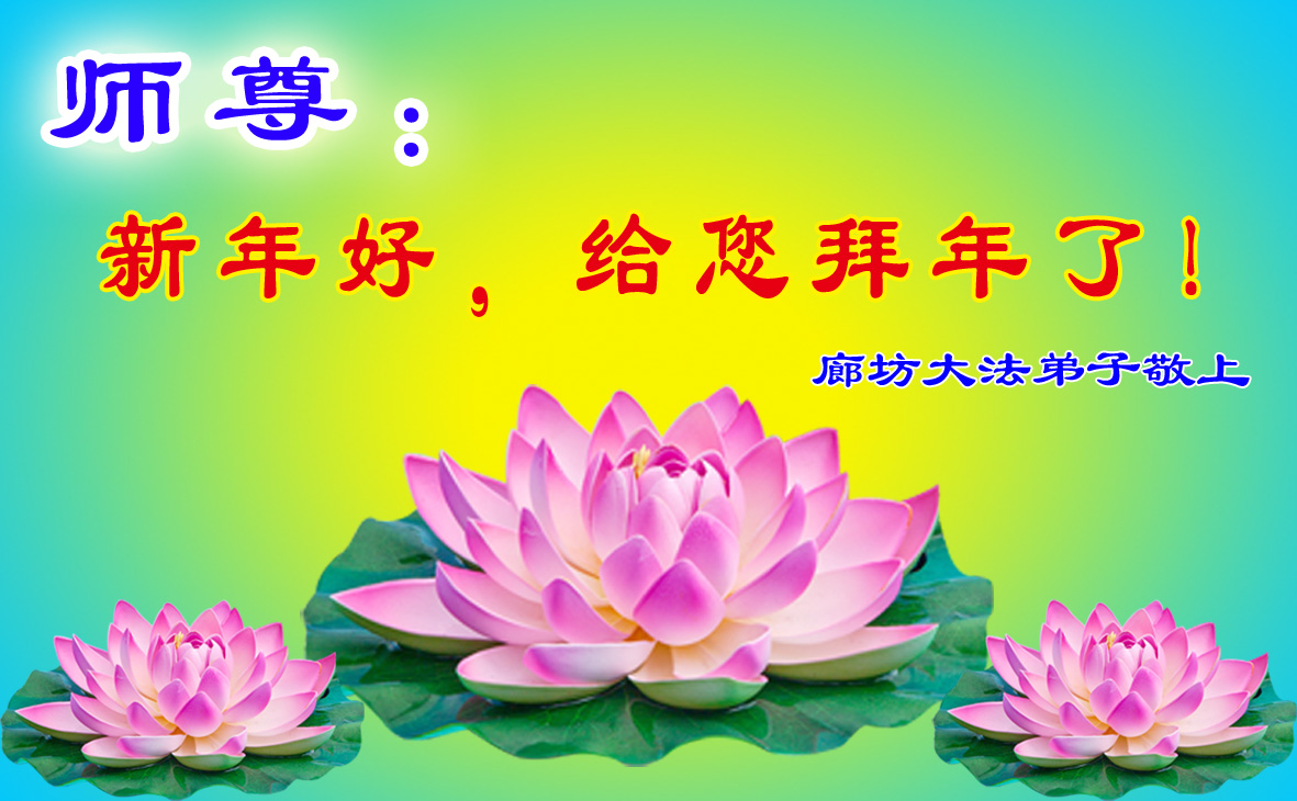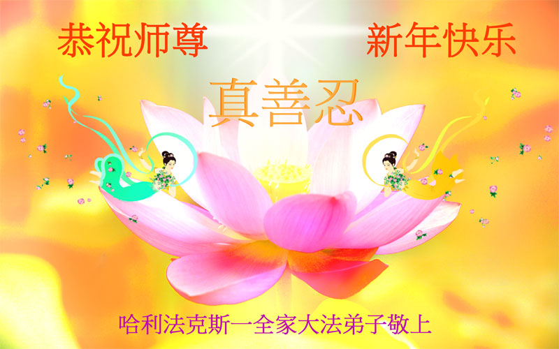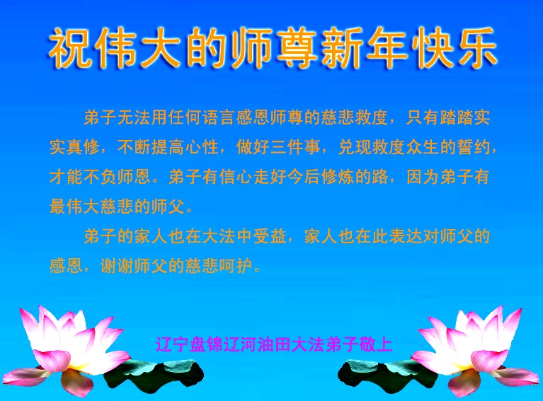 作为大法弟子的家属,在新年到来之际,向伟大的李老师拜年!感谢李老师对弟子及其家属的慈悲呵护!祝李老师新年快乐!