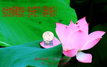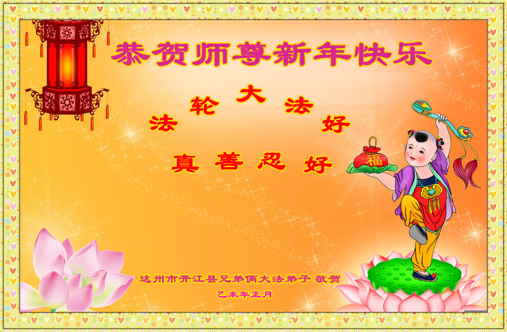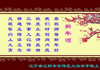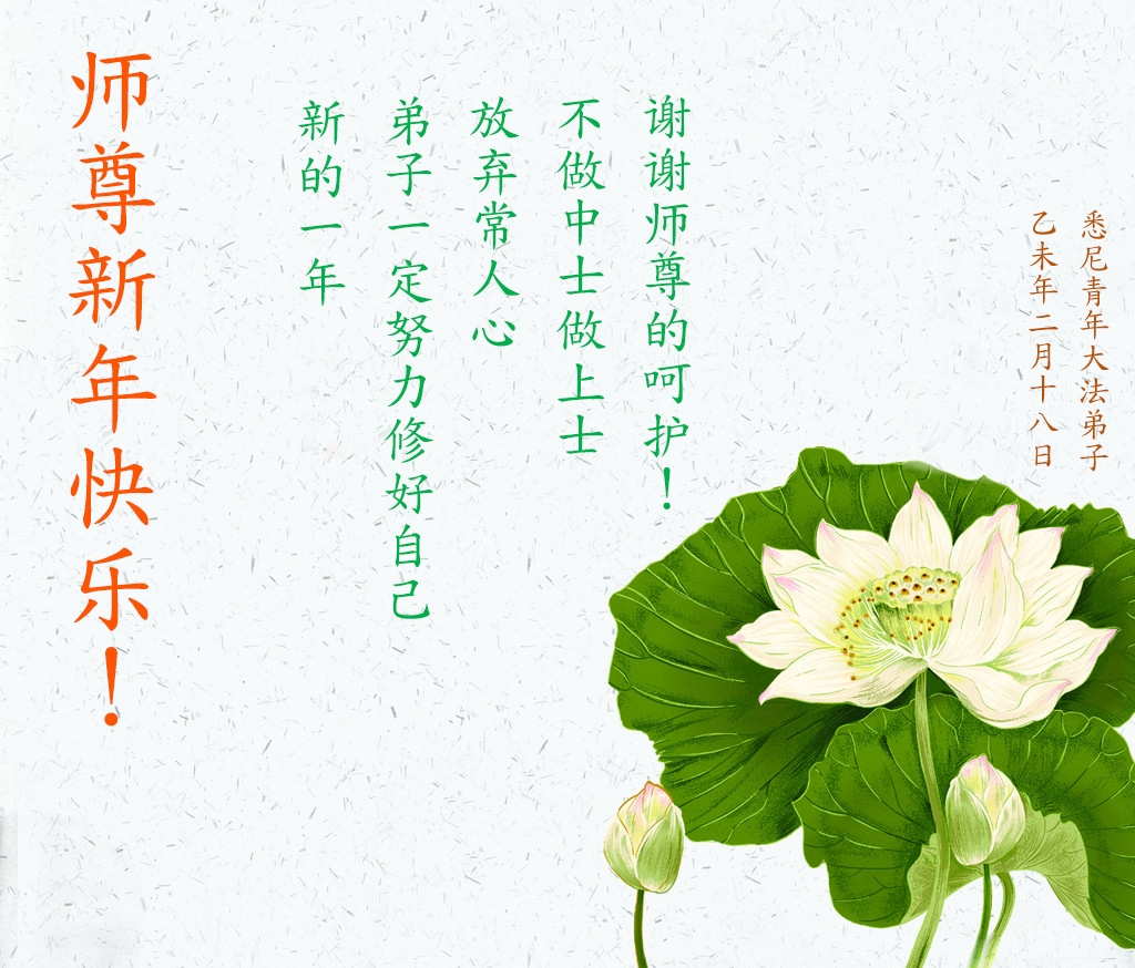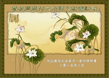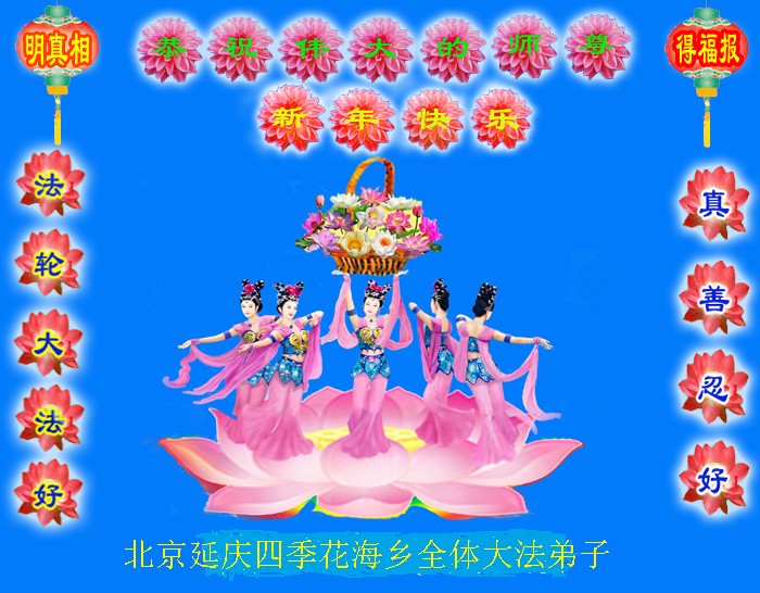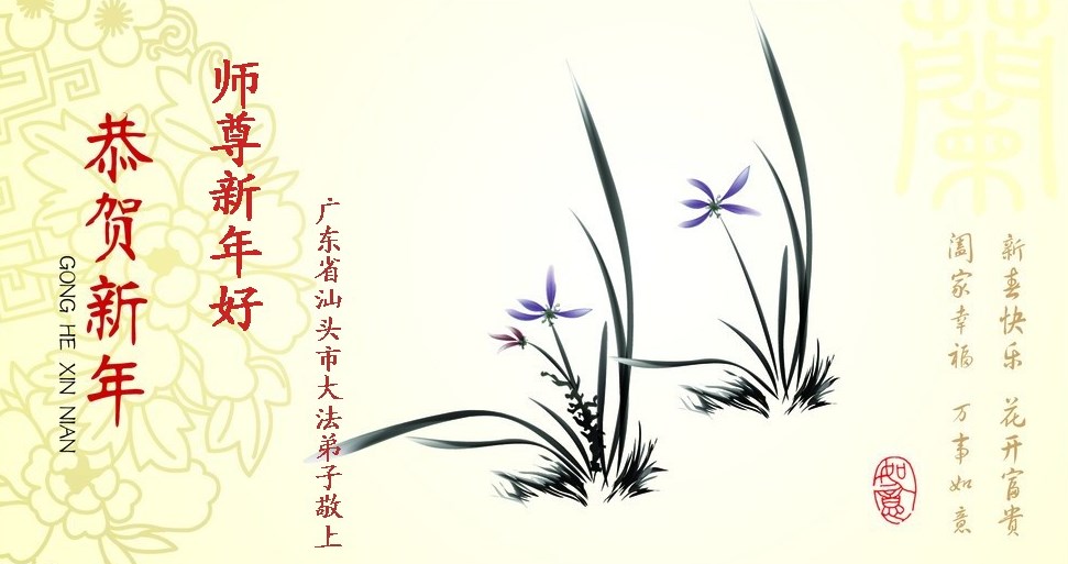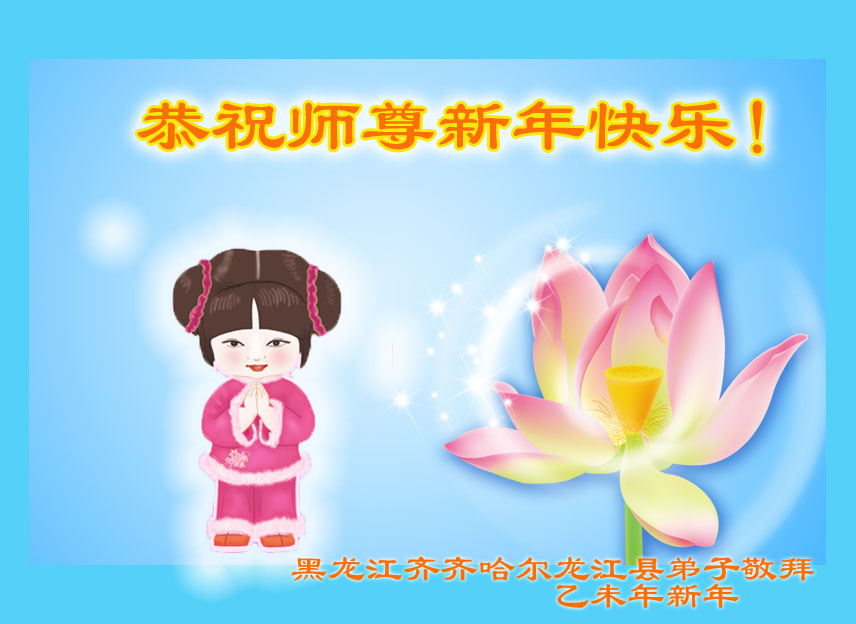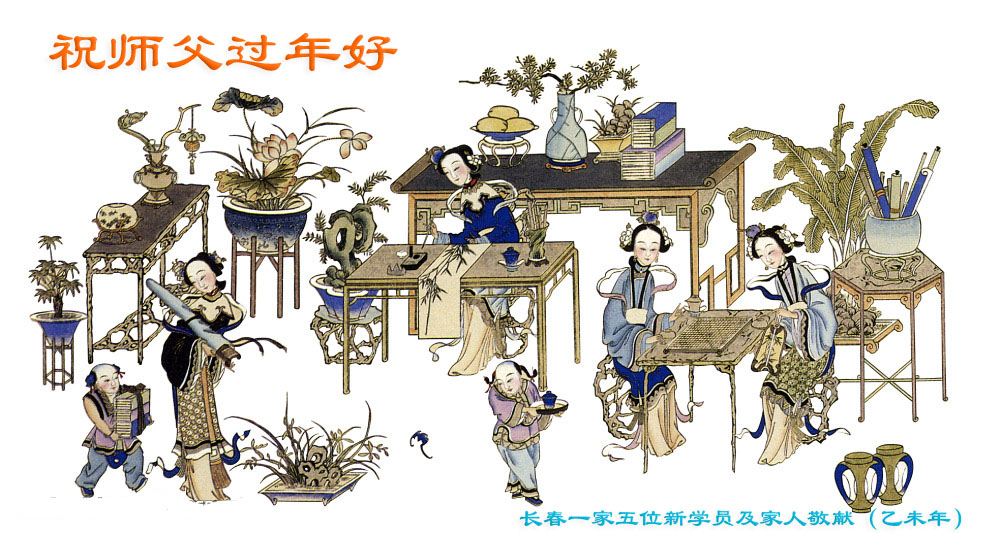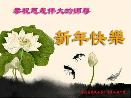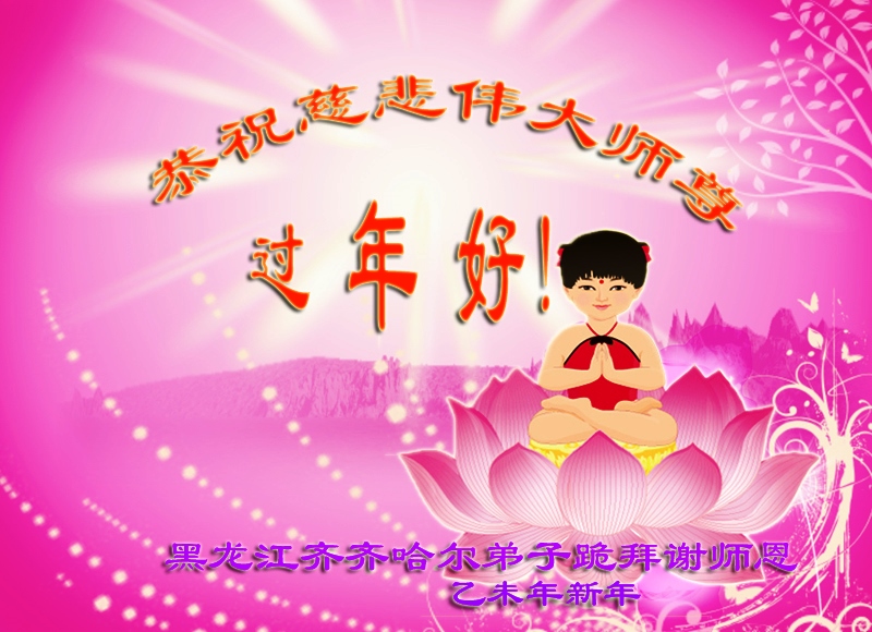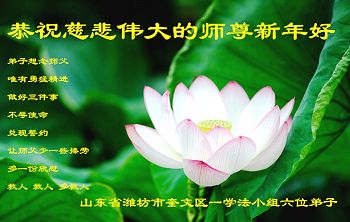 作为大法弟子的家属,在新年到来之际,向伟大的李老师拜年!感谢李老师对弟子及其家属的慈悲呵护!祝李老师新年快乐!