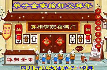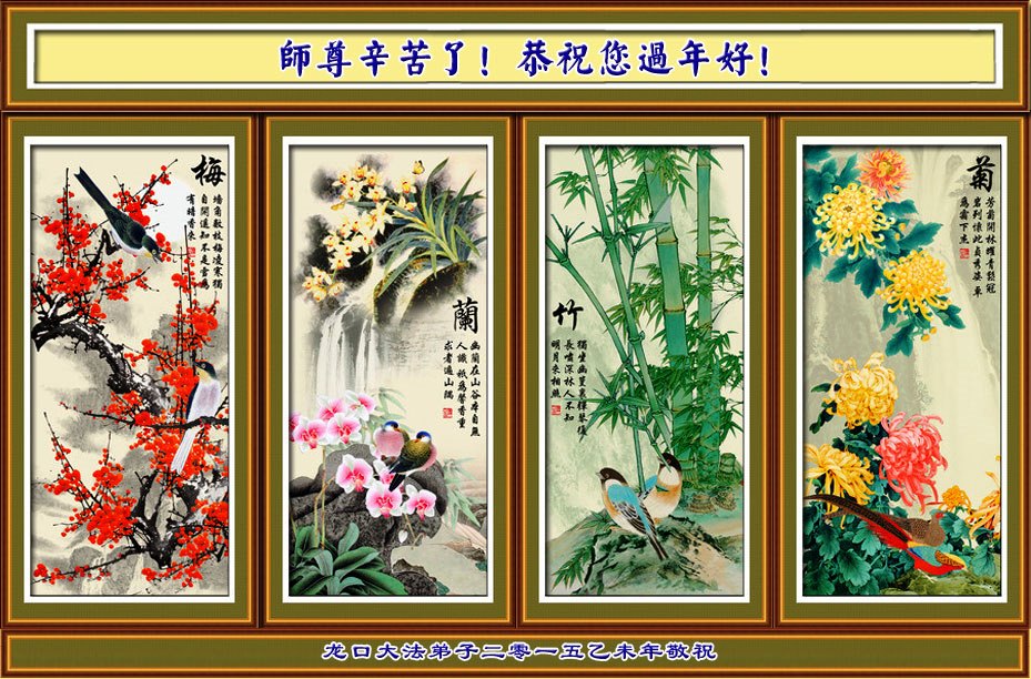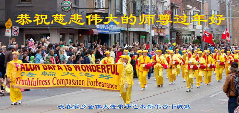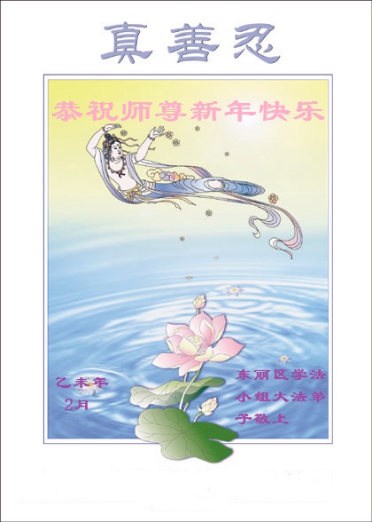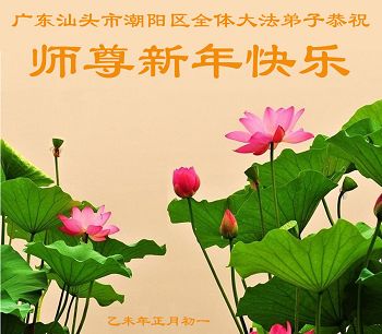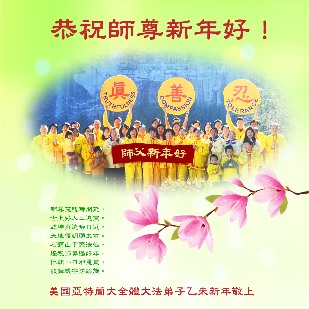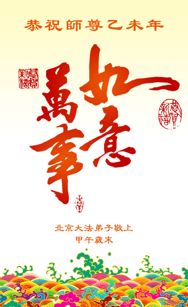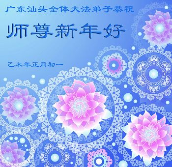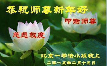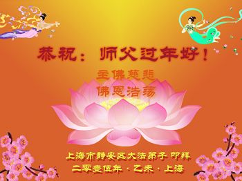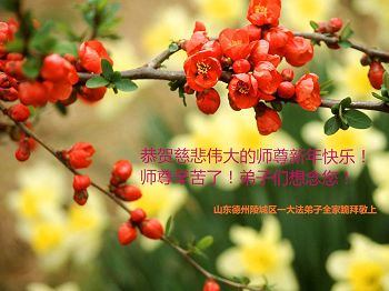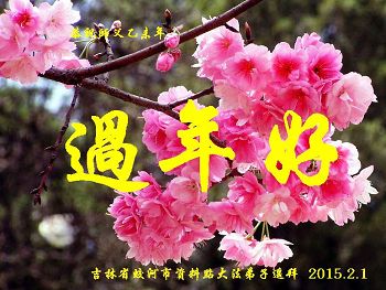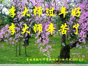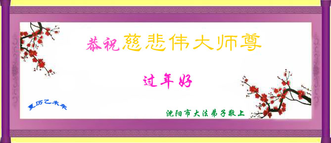 过年问候 在乙未年来临之际,我们大法弟子家属向李洪志师父问好!恭祝李洪志师父过年快乐!万事如意。作为大法弟子家属我们一定牢记“法轮大法好,真善忍好。”