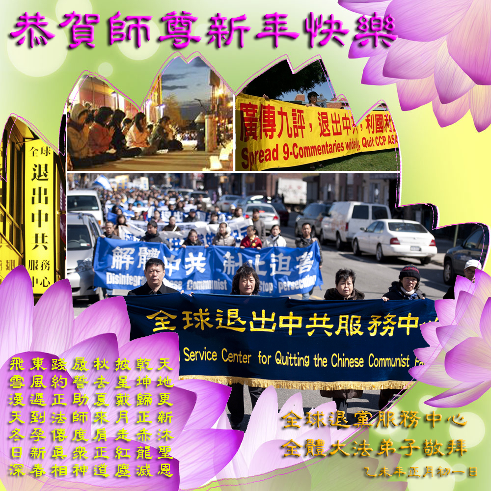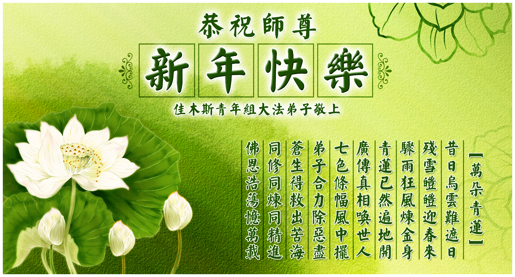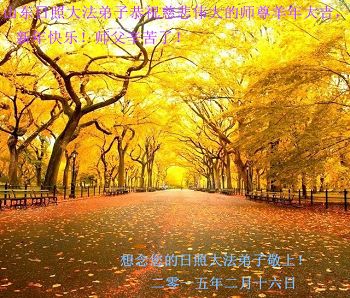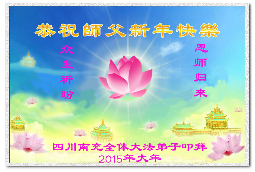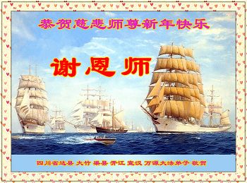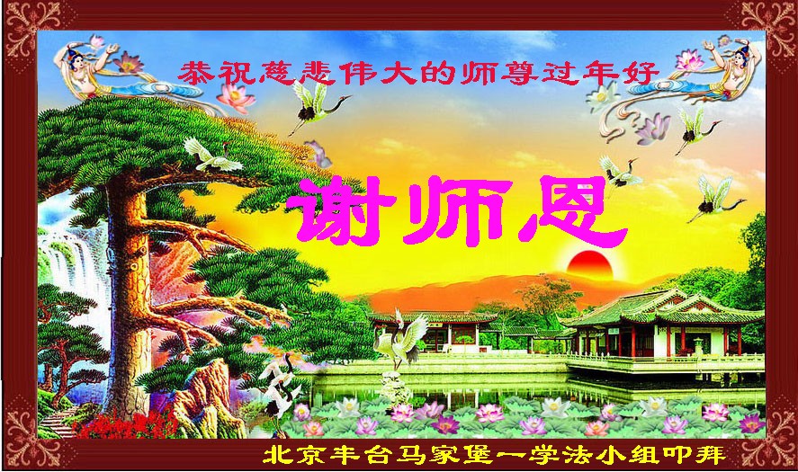 感谢师尊让我二人能有机会助师正法,我们感到万分荣幸!对师尊的慈悲苦度我俩感恩不尽!唯有继续做好三件事。恭祝师尊新年快乐!