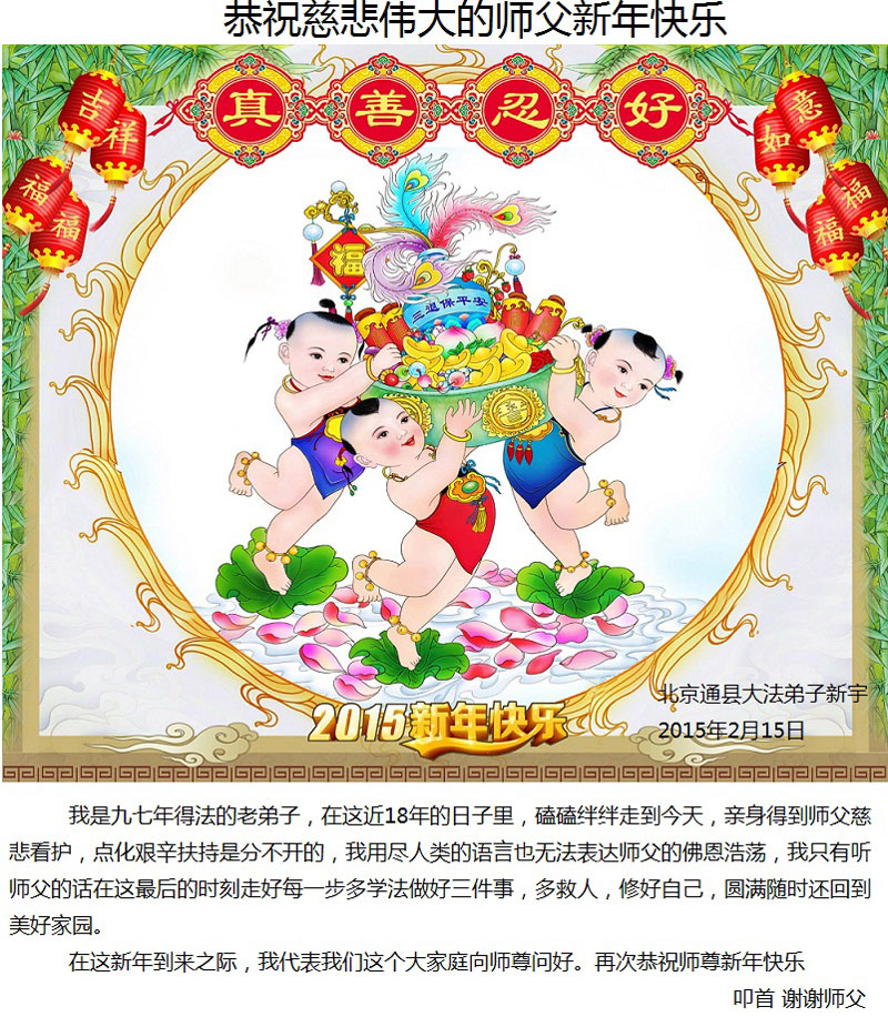 <英文版: http://en.minghui.org/html/articles/2015/2/20/148812.html>大陆百姓恭祝大法师父过年好(26条)