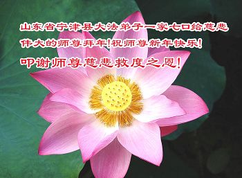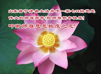 值此新年到来之际,我们全家恭祝伟大的李洪志师父新年快乐!谢谢大法师父的救度之恩!跪拜师恩!双手合十!