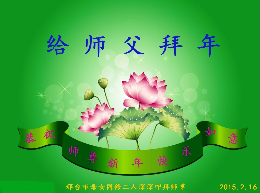 新年到来,我们全家人给师父拜年,祝师父新年快乐!事事如意!