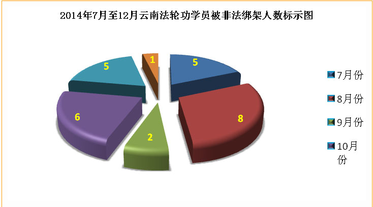 ![]() 图1. 二零一四年下半年云南法轮功学员被绑架人数按月分布 |