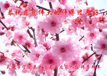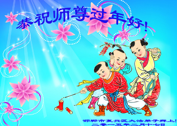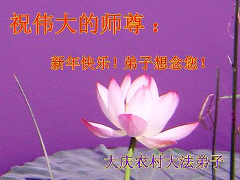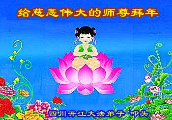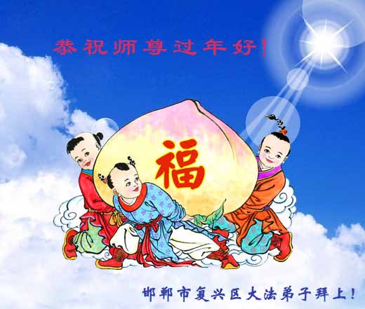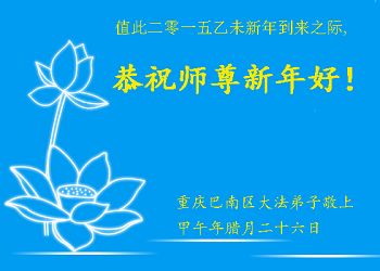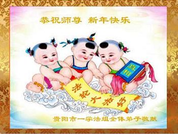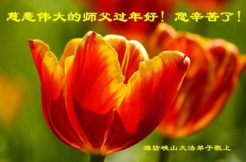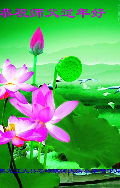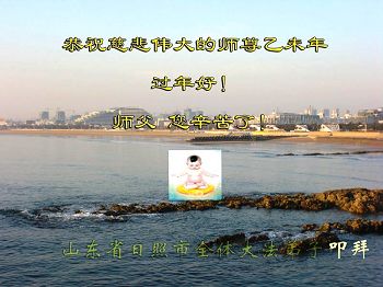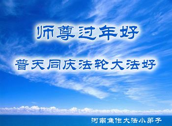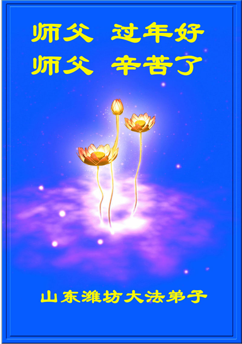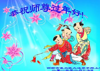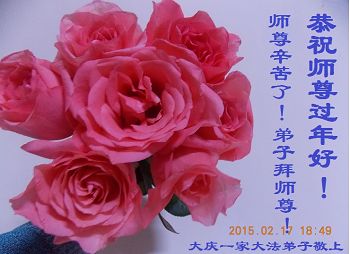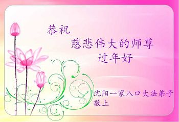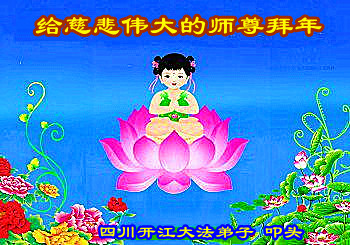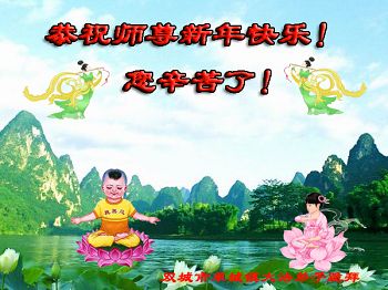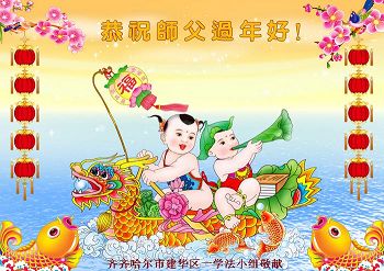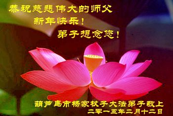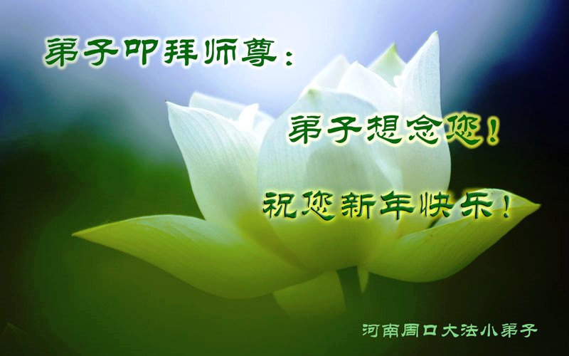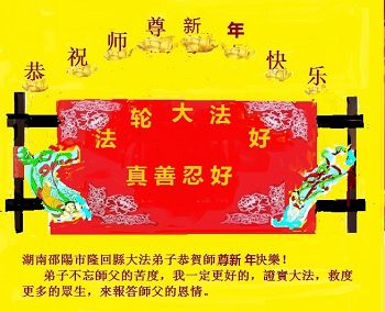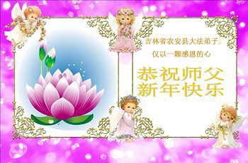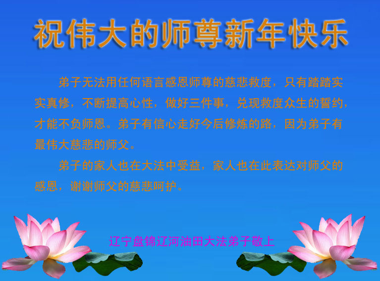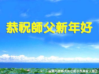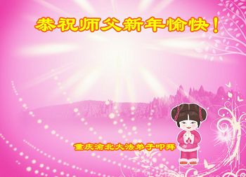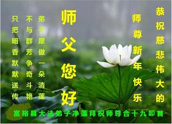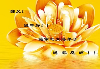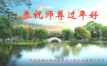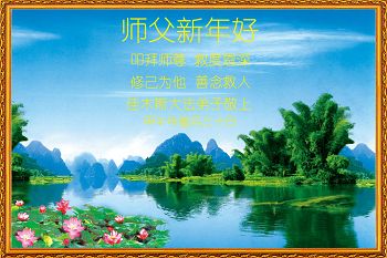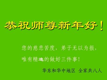李大师:我是一名打工人员,您的大法在群众中深得民心,是民众的主心骨,所以我是拥护大法的忠实一员。我对此法有一定的了解,法轮功在传播着真、善、忍。我代表我们全家向您拜个早年!
