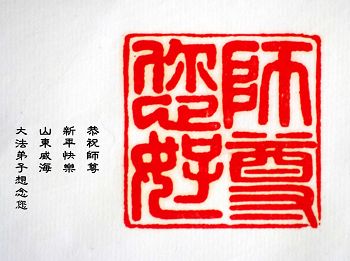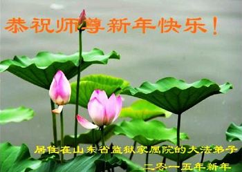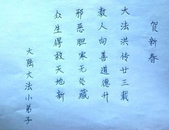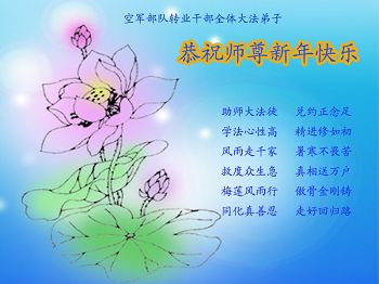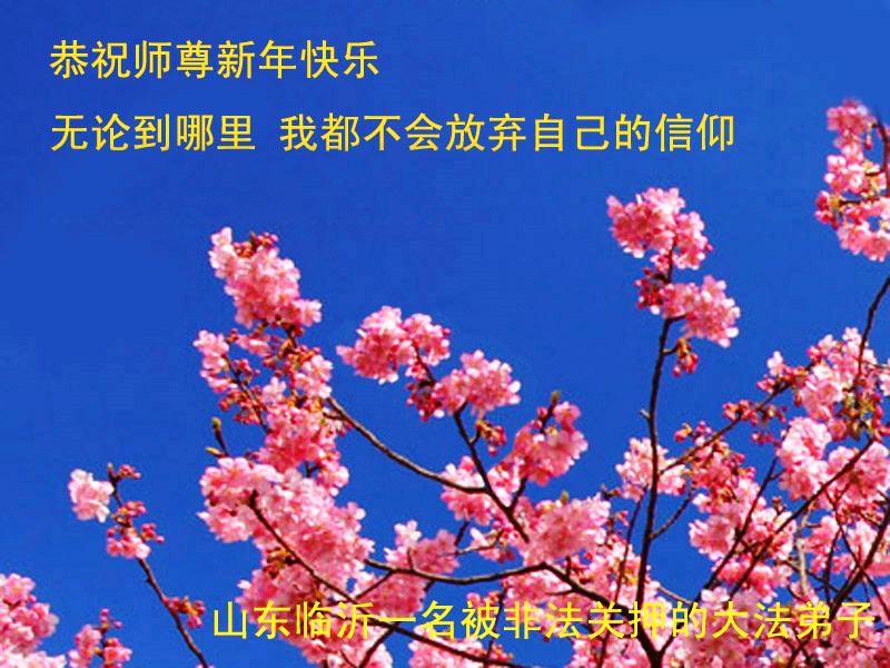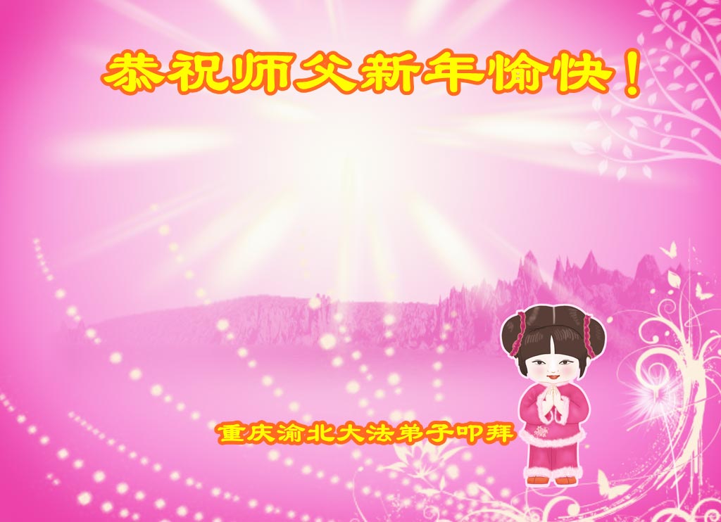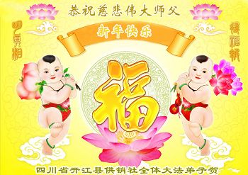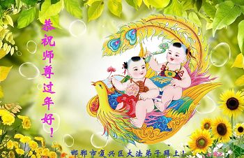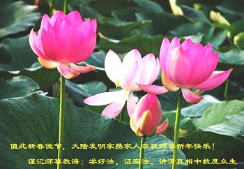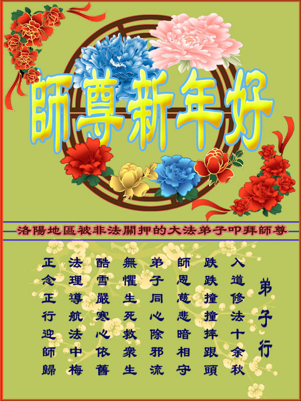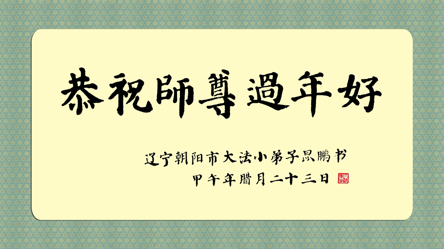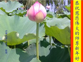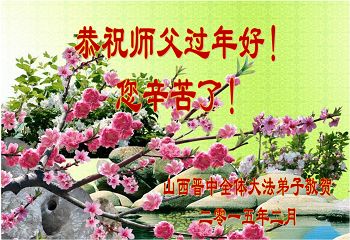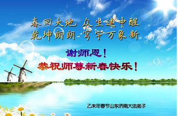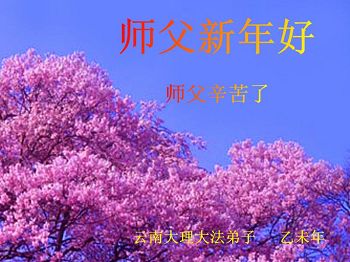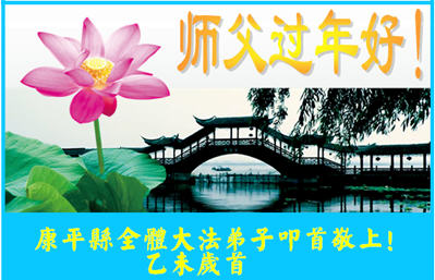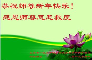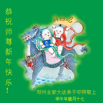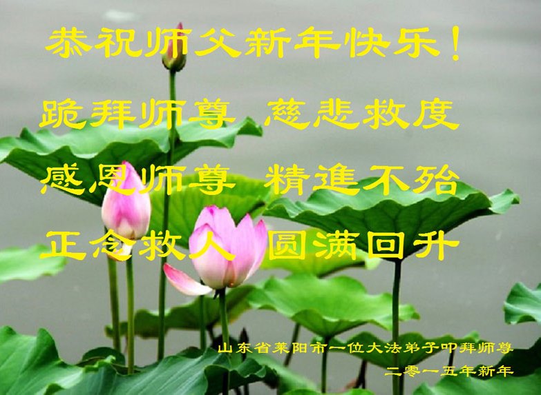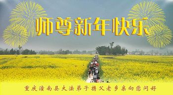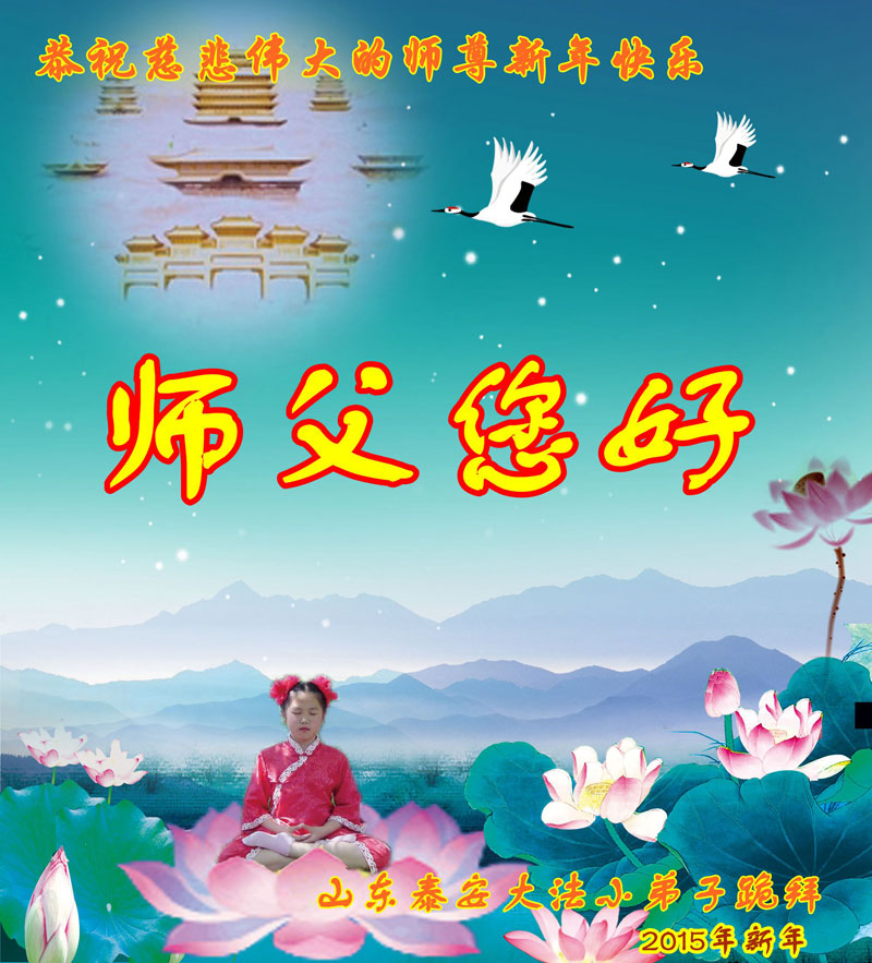 李大师:我是一名打工人员,您的大法在群众中深得民心,是民众的主心骨,所以我是拥护大法的忠实一员。我对此法有一定的了解,法轮功在传播着真、善、忍。我代表我们全家向您拜个早年!
