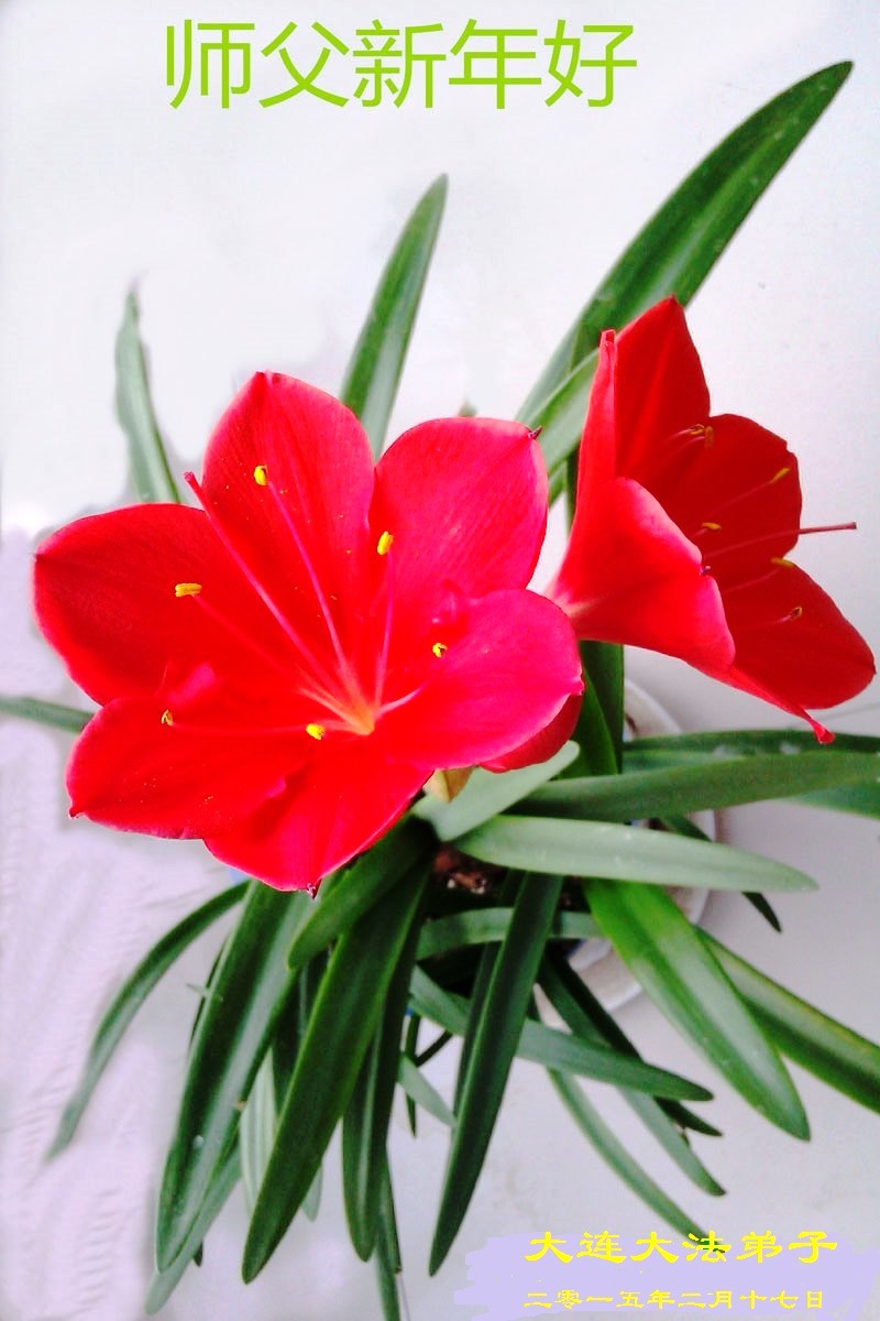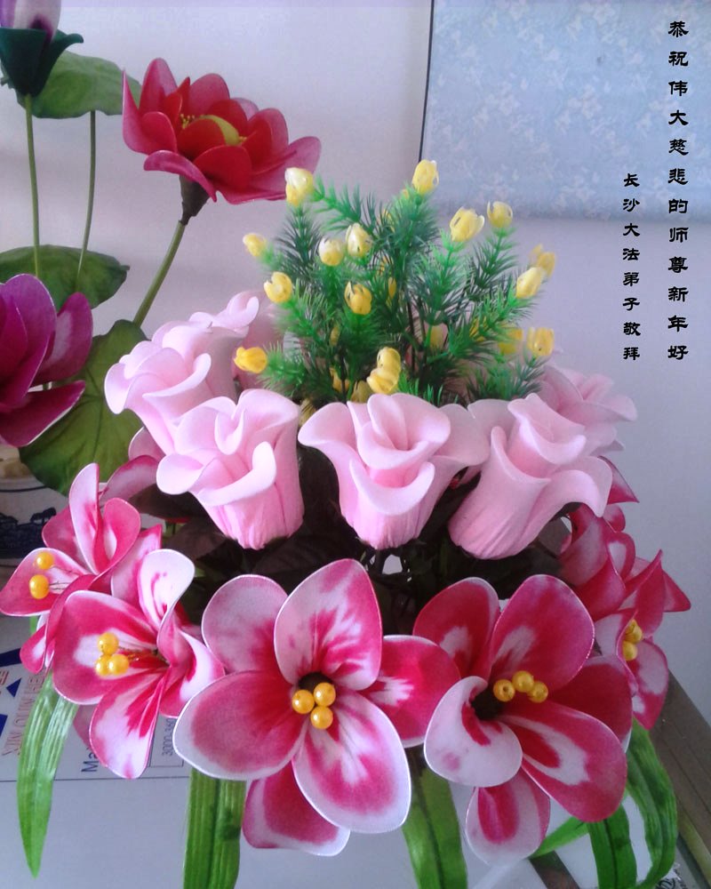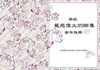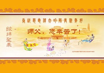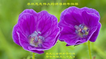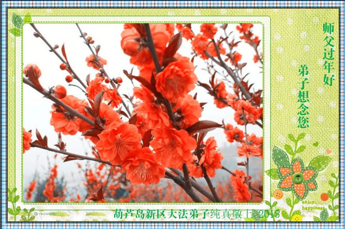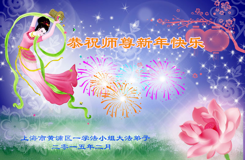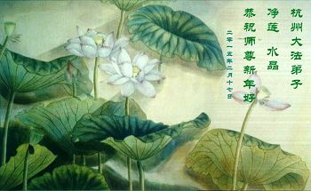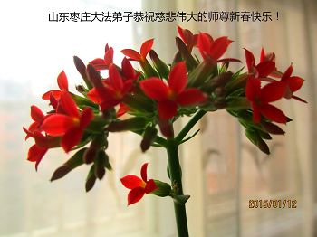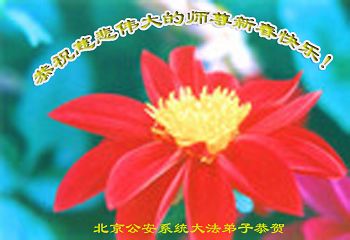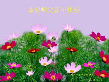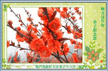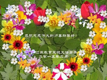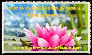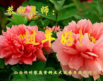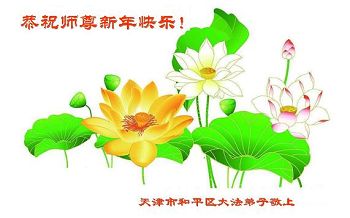 我今年79岁了,我以前因为胆小怕共产党的那一套整人的伎俩,不支持我的亲人炼法轮功, 后来在亲人的劝说下看了《九评共产党》、《神韵》、《未来人的神话故事》等等真相小册子之类,彻底明白了真相,我常念法轮大法好,身体更加健康,有时我还看看大法书籍,我昨天去买来鲜花给您敬上,又叫我外孙女帮我做成贺卡给您拜年! 谢谢李大师!