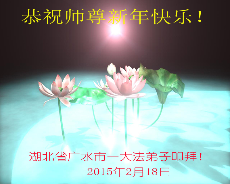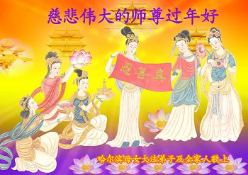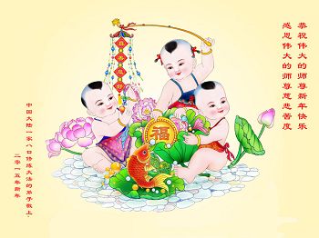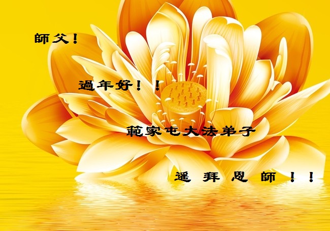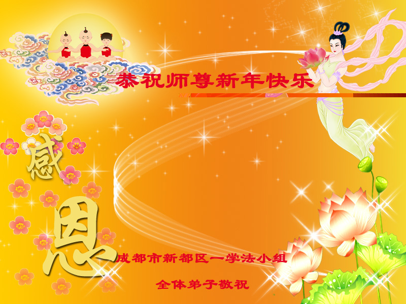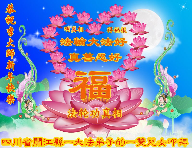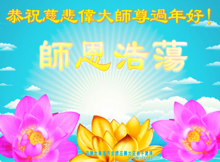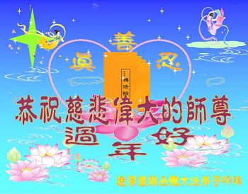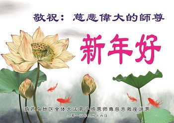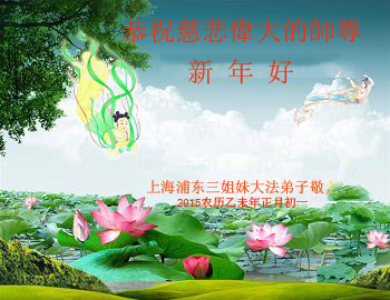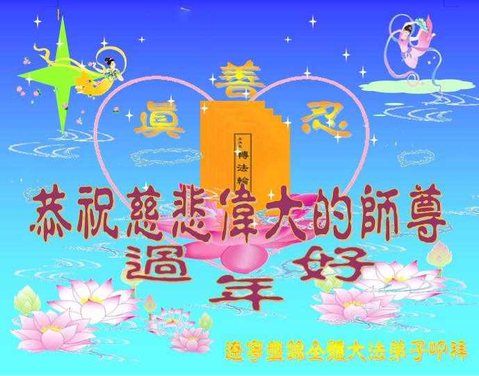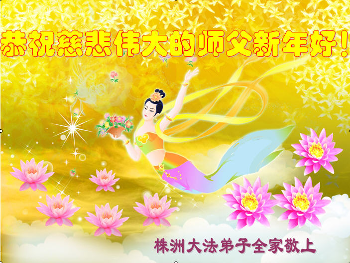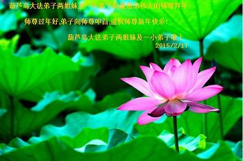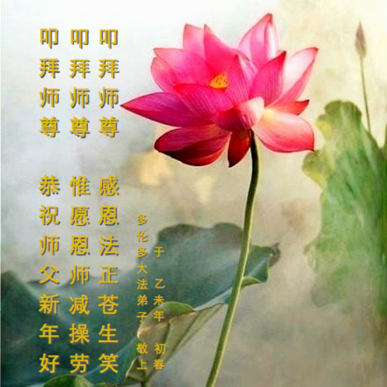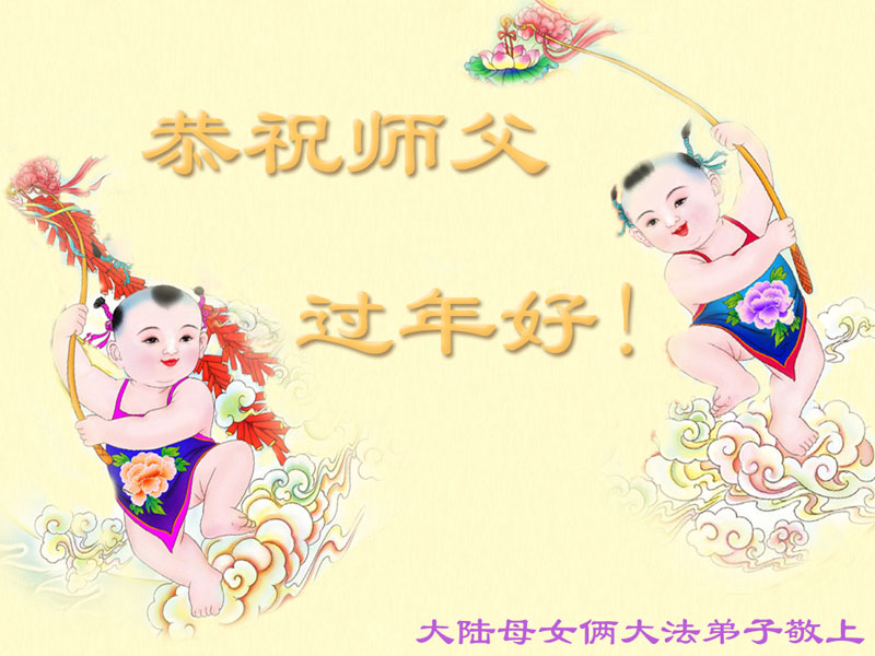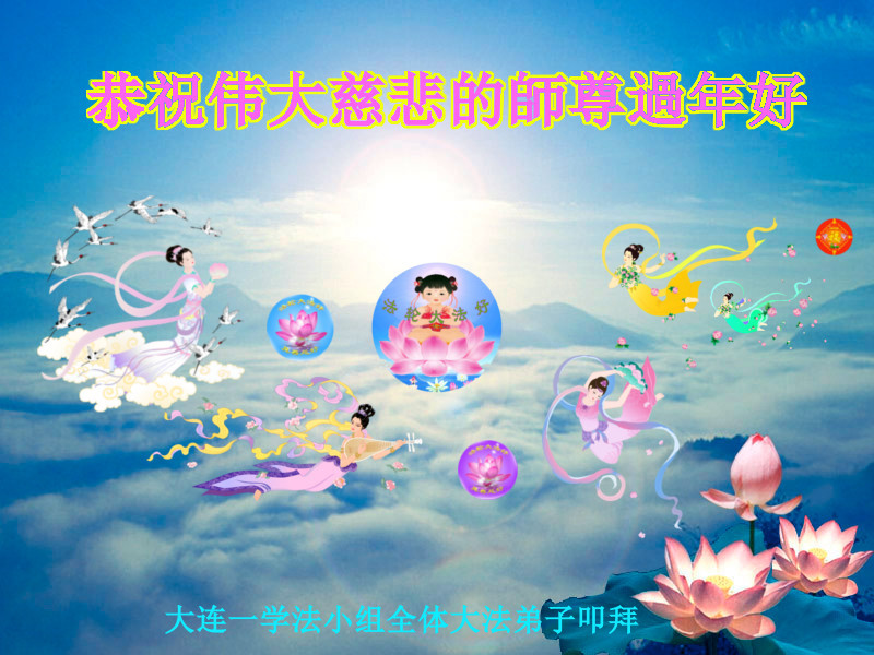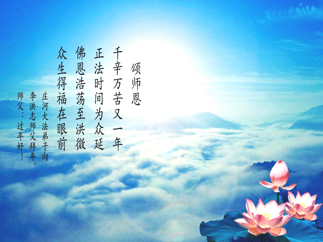 我们妈妈是炼法轮功的,我们也一直在李大师的慈悲呵护下,几次开车在路途中,都能遇难呈祥。在这辞旧迎新的大年中,我们跪拜恩师的慈悲救度,感恩李大师的护佑!恭祝李大师新年快乐!