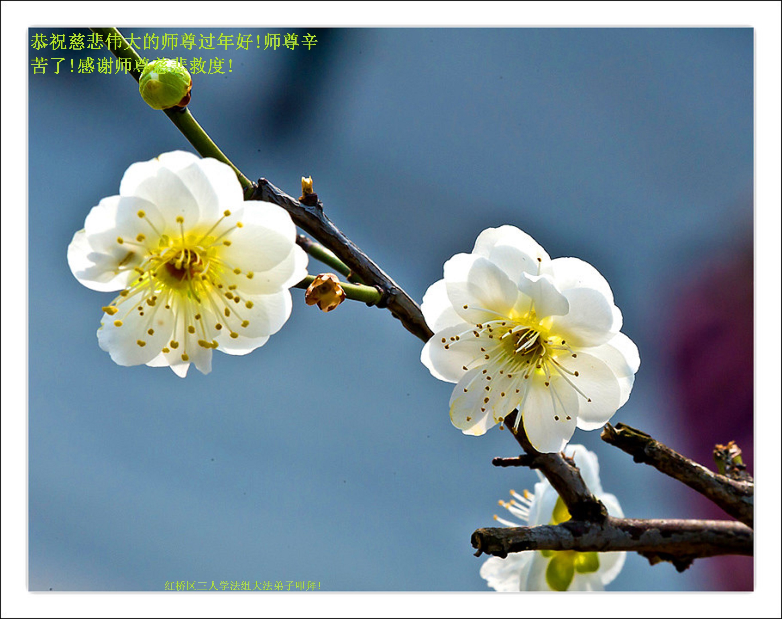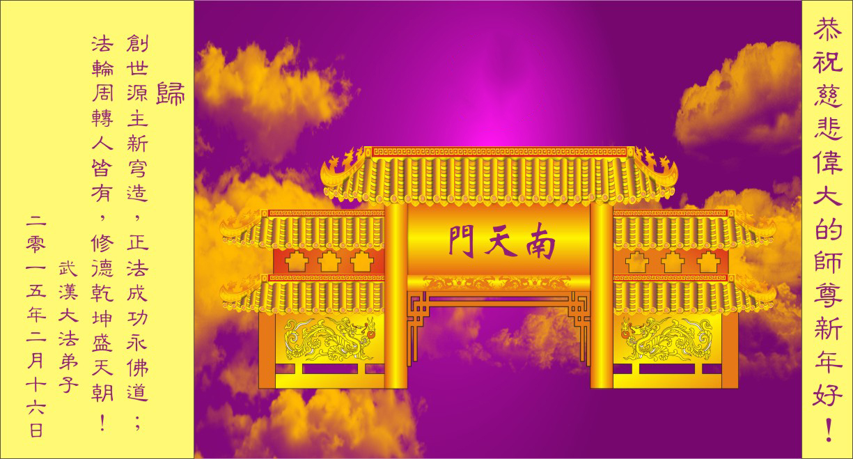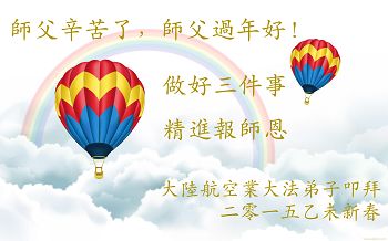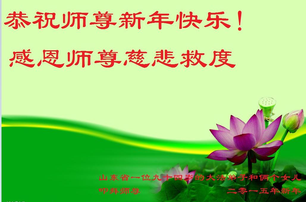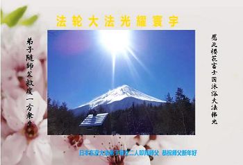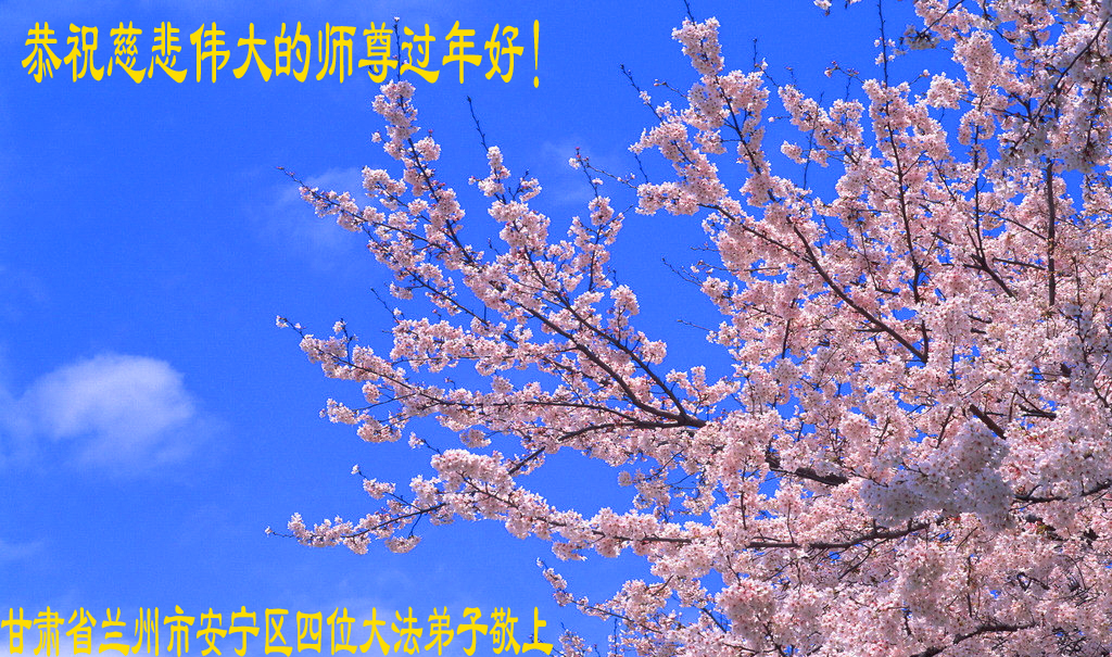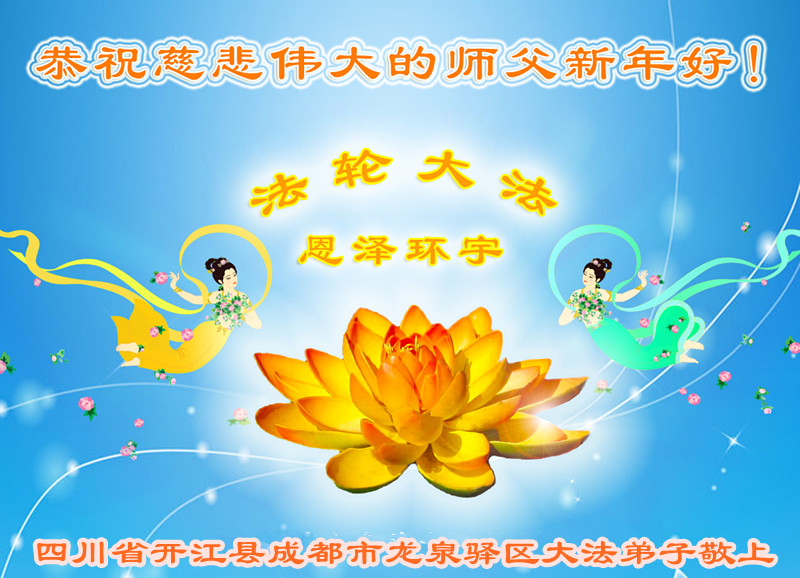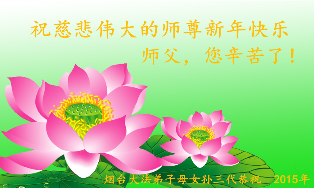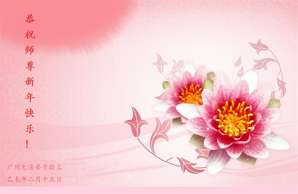 我们妈妈是炼法轮功的,我们也一直在李大师的慈悲呵护下,几次开车在路途中,都能遇难呈祥。在这辞旧迎新的大年中,我们跪拜恩师的慈悲救度,感恩李大师的护佑!恭祝李大师新年快乐!