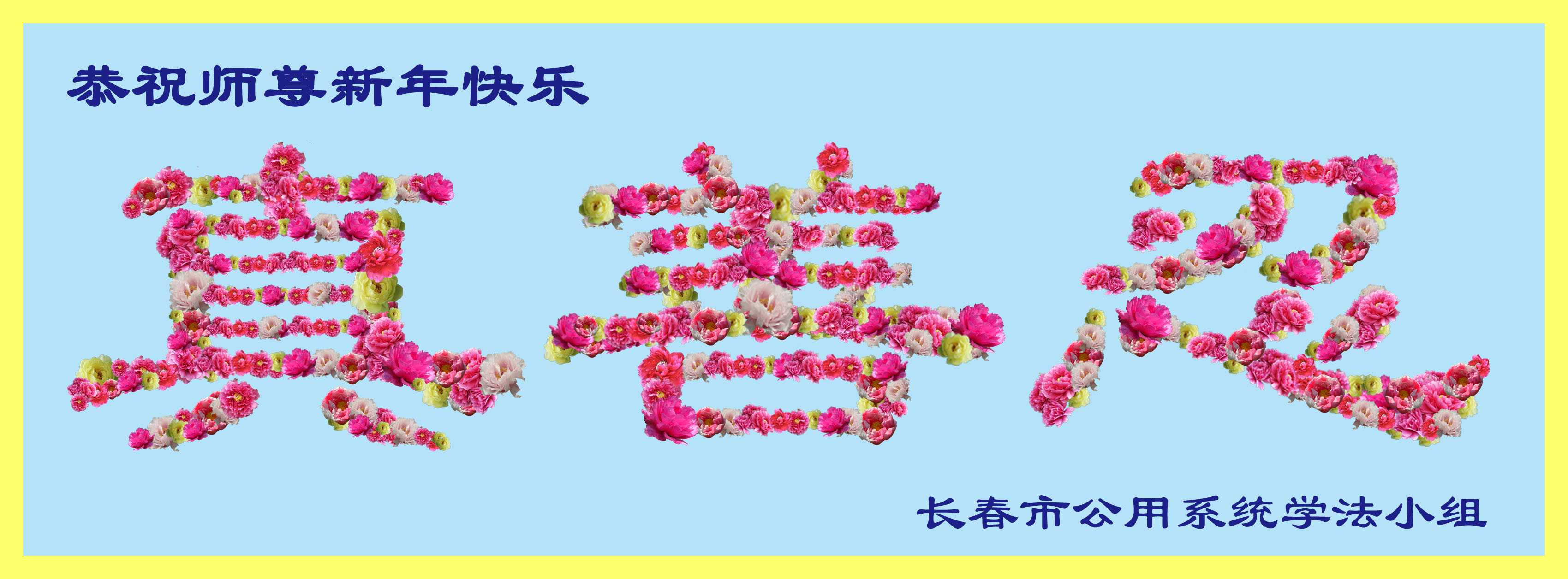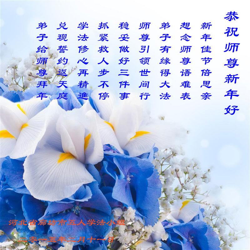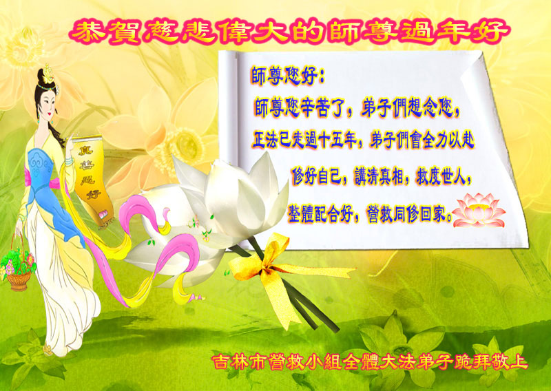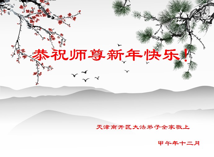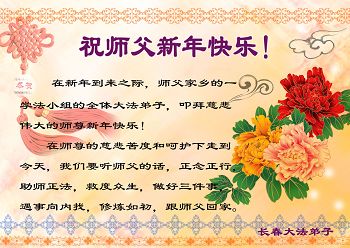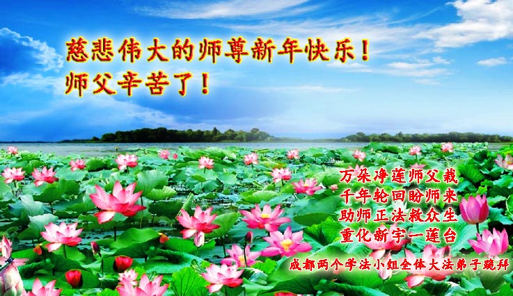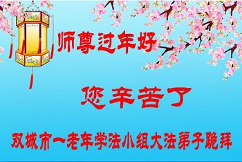 新的一年到了,我们学法小组的同修和明真相的家人遥祝师尊新年好!向师尊道声辛苦了!愿在以后的时间里做好三件事,望师尊放心。