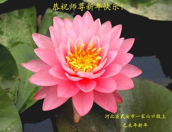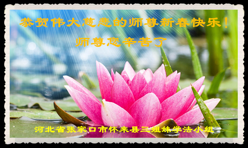 我们是承德市大法弟子家属,是修炼人家中的受益者。新年到了,我们在这里恭祝李大师过年好!感谢李大师的慈悲救度!