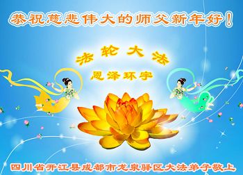 我母亲修炼法轮大法,多病的身体,从修炼大法以后,十二种病不移而飞。我母亲的性格从暴烈到现在变成和善,真是换了一个人。为此我们姐弟在这新年来临之际,向伟大的李洪志大法师父衷心的谢谢,祝大师在新的一年里万事如意,心想事成!