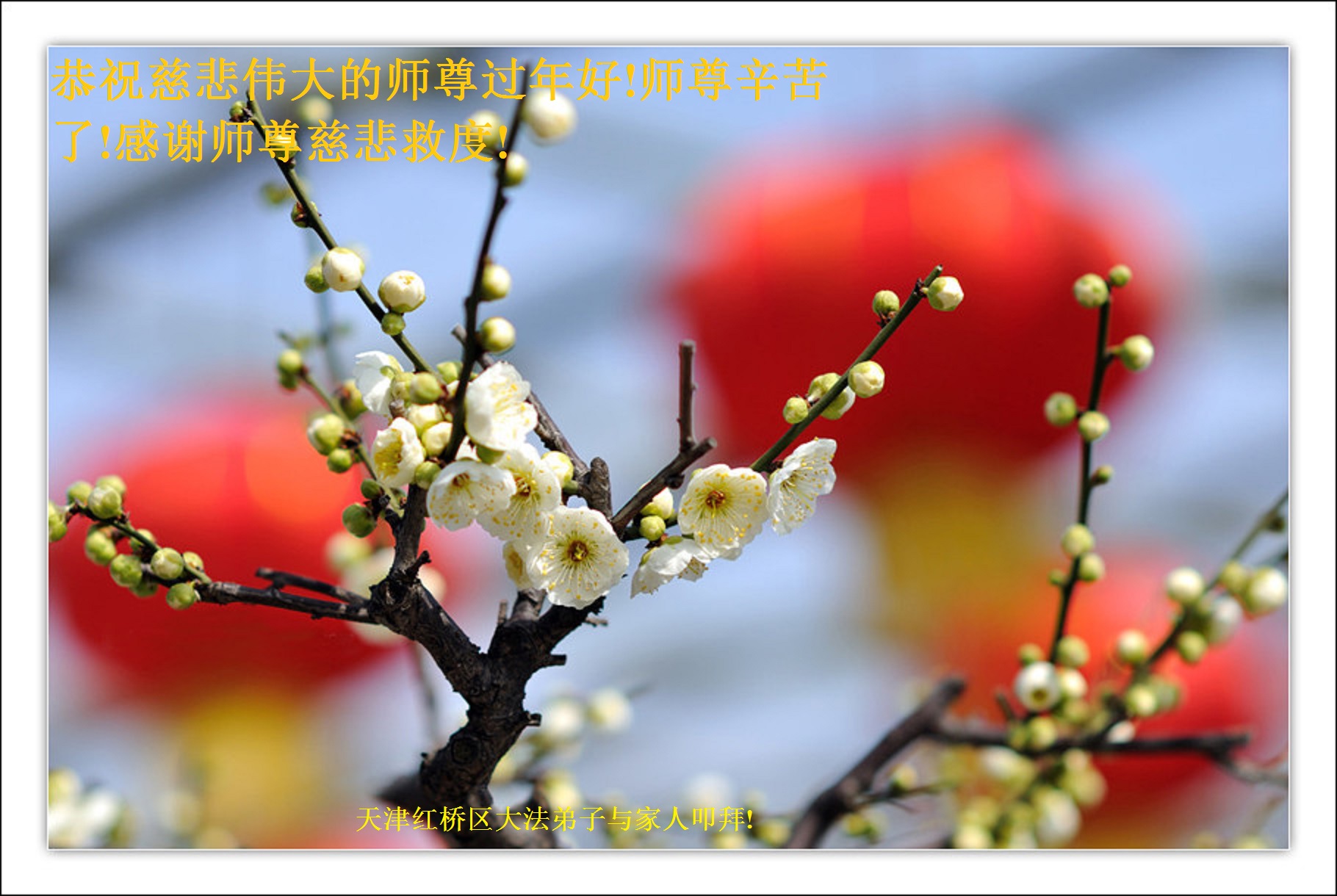 在此新年之际,我们全家老小五口人给您拜年,感谢李大师的慈悲救度!恭祝李大师过年好!祝您全家过年好!