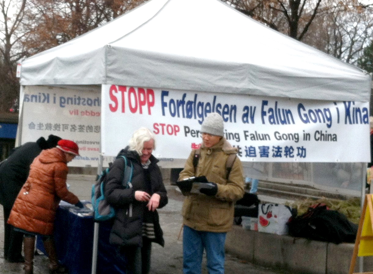 挪威民众签名支持法轮功反迫害(图)