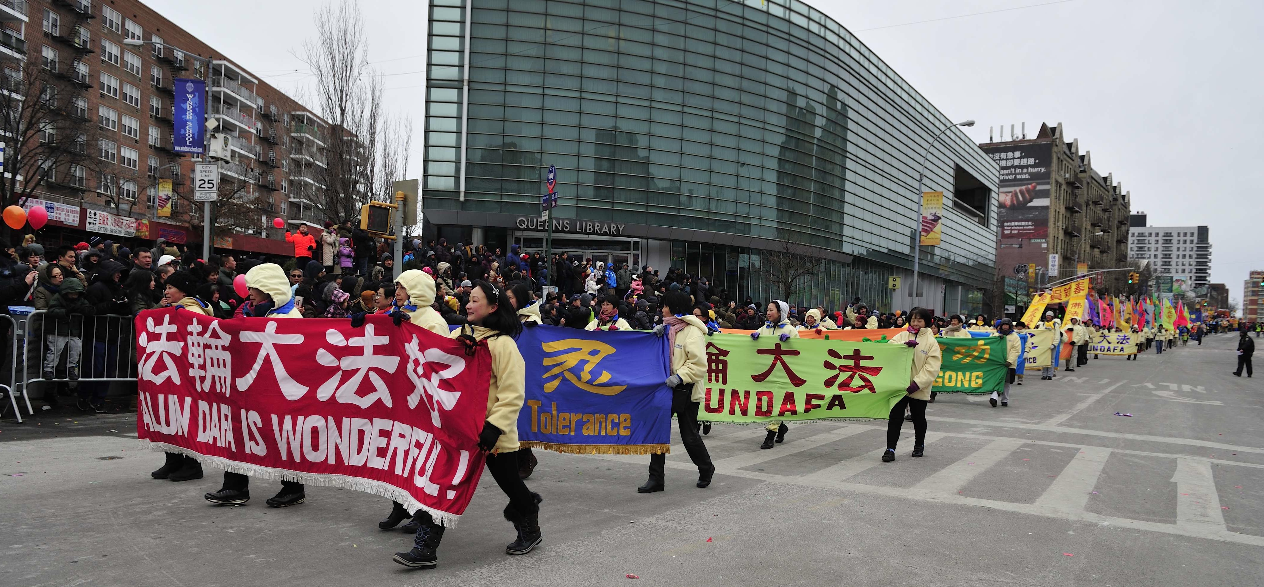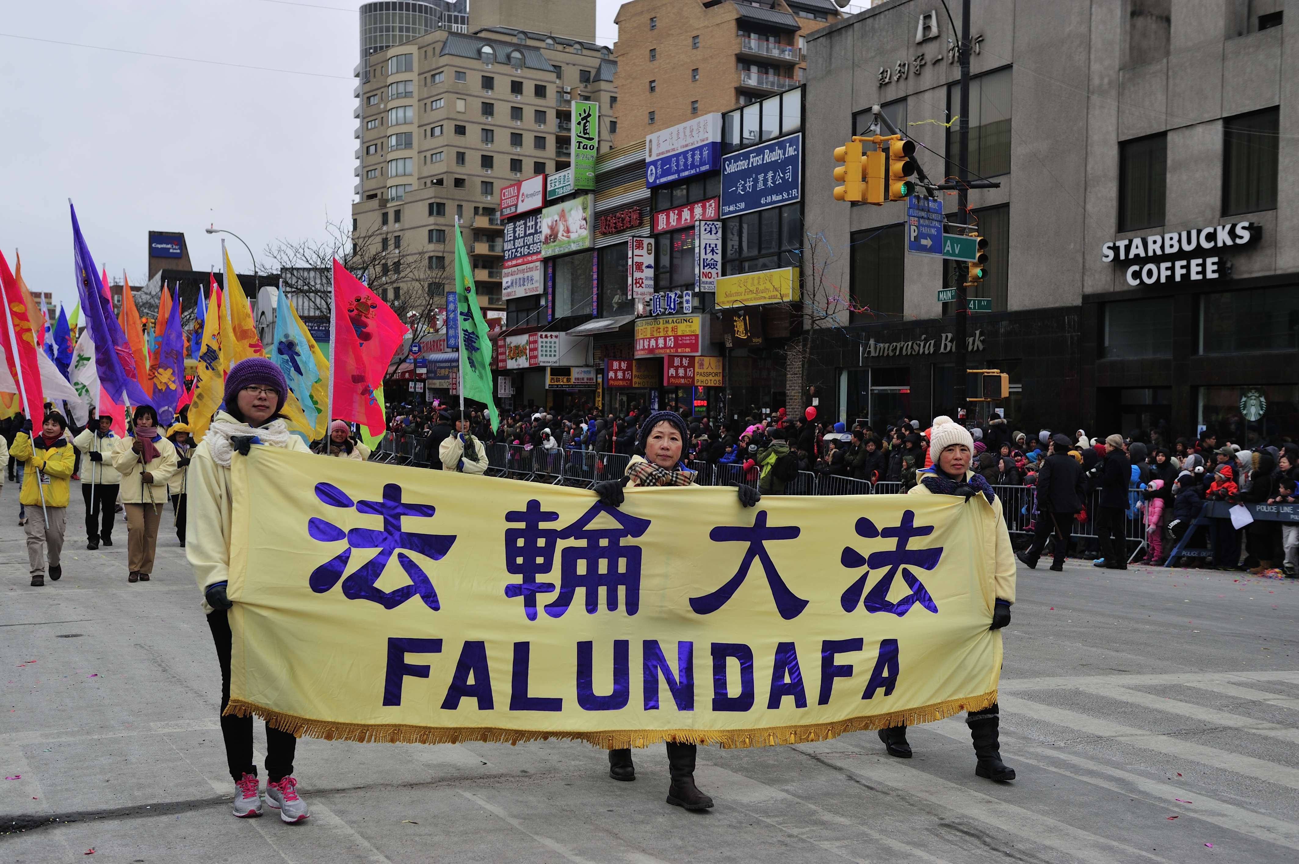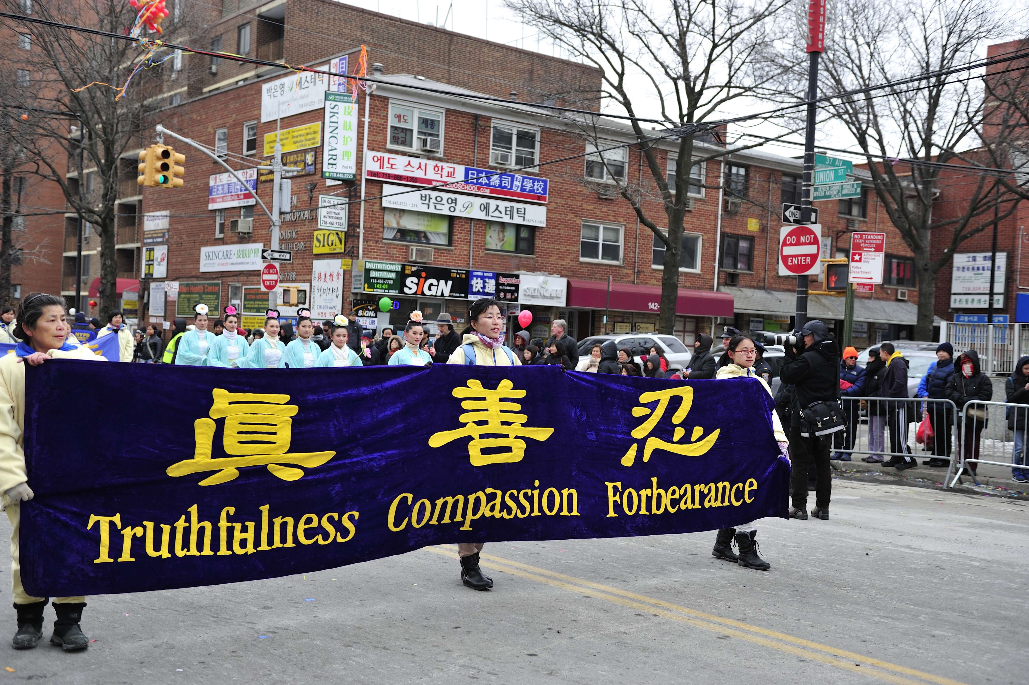 法轮功舞龙队的协调人Ben Zgodny,是华尔街的咨询师,在华尔街有自己的公司。Suman Srinivasan,是一位高级数据分析师,十年来他们每年都来参加法拉盛的新年游行,很高兴能把大法的美好带给观看的民众,希望更多的人能明白真相,记住“法轮大法好”。Ben Zgodny说:“我很幸运成为法轮功的修炼者,这让我得以一见真正的中国传统文化,知道他的美好,而舞龙也是中国文化的一部份。”扮演唐朝仕女的Catherine Liu在伦斯勒理工学院(Rensselaer Polytechnic Institute,RPI)读硕士。看到很多华人带着孩子来看游行,大家对法轮功游行队伍非常热心,她很高兴,特别是游行的时候,经常听到观众喊“好漂亮,仙女”。