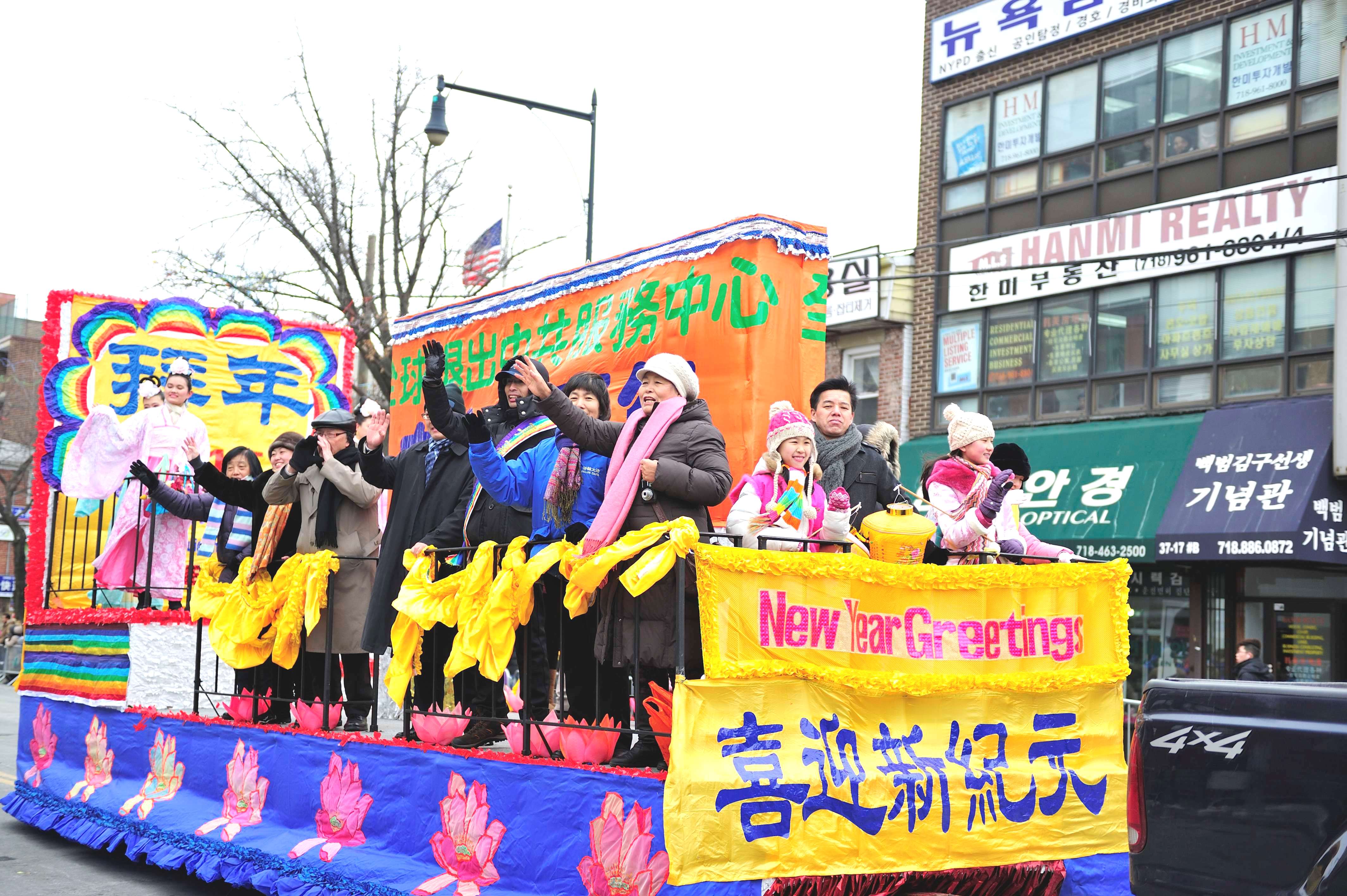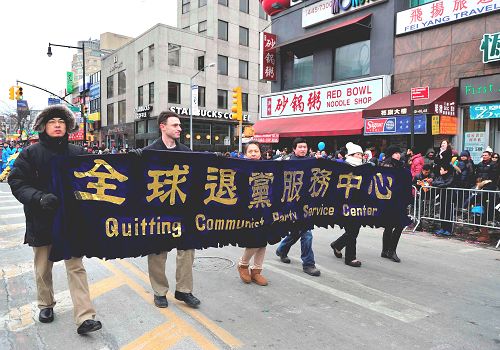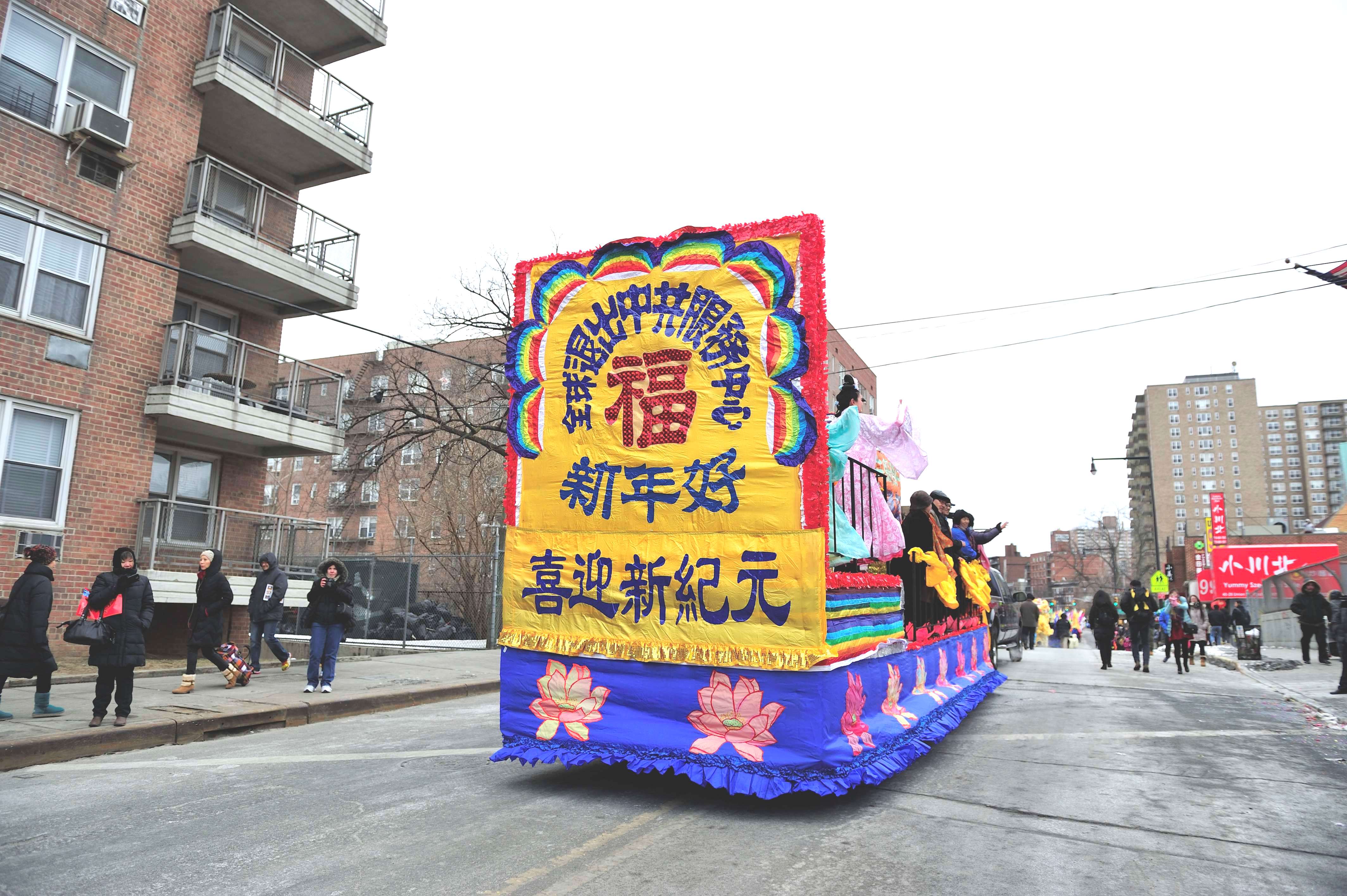 “全球退党服务中心”的队伍以金狮开道,锣鼓喧天,并有美丽的花车,庆祝新天地。总部设在纽约法拉盛的“全球退党服务中心”负责人易蓉说,“全球退党服务中心”的义工是法拉盛社区活跃的一员,退党服务中心多年参加法拉盛的新年大游行。
